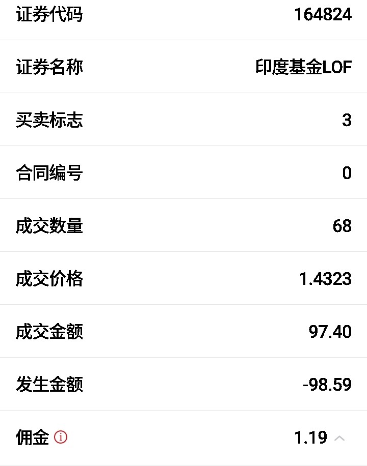 3、场内LOF申购费打折的实现方式为:全额冻结申购款,按不打折费率给基金份额,在交割时会只扣除申购到的基金市值 优惠后的申购费,剩余资金会自动解冻回到账户;自己核对申购的方式:交割单——用手续费/成交金额=真实申购折扣;