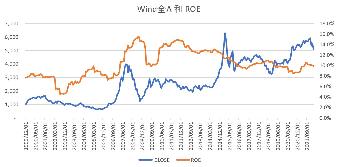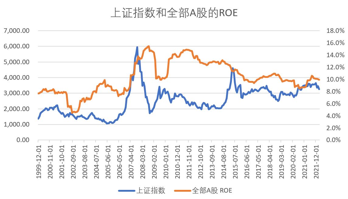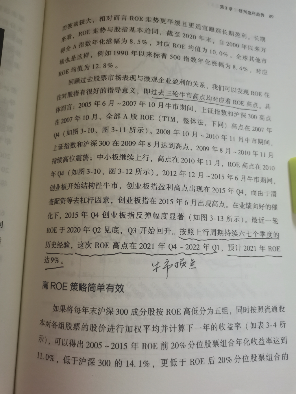 你这书上说的有问题吧?哪里能看出来“股市高点对应着ROE高点”了?