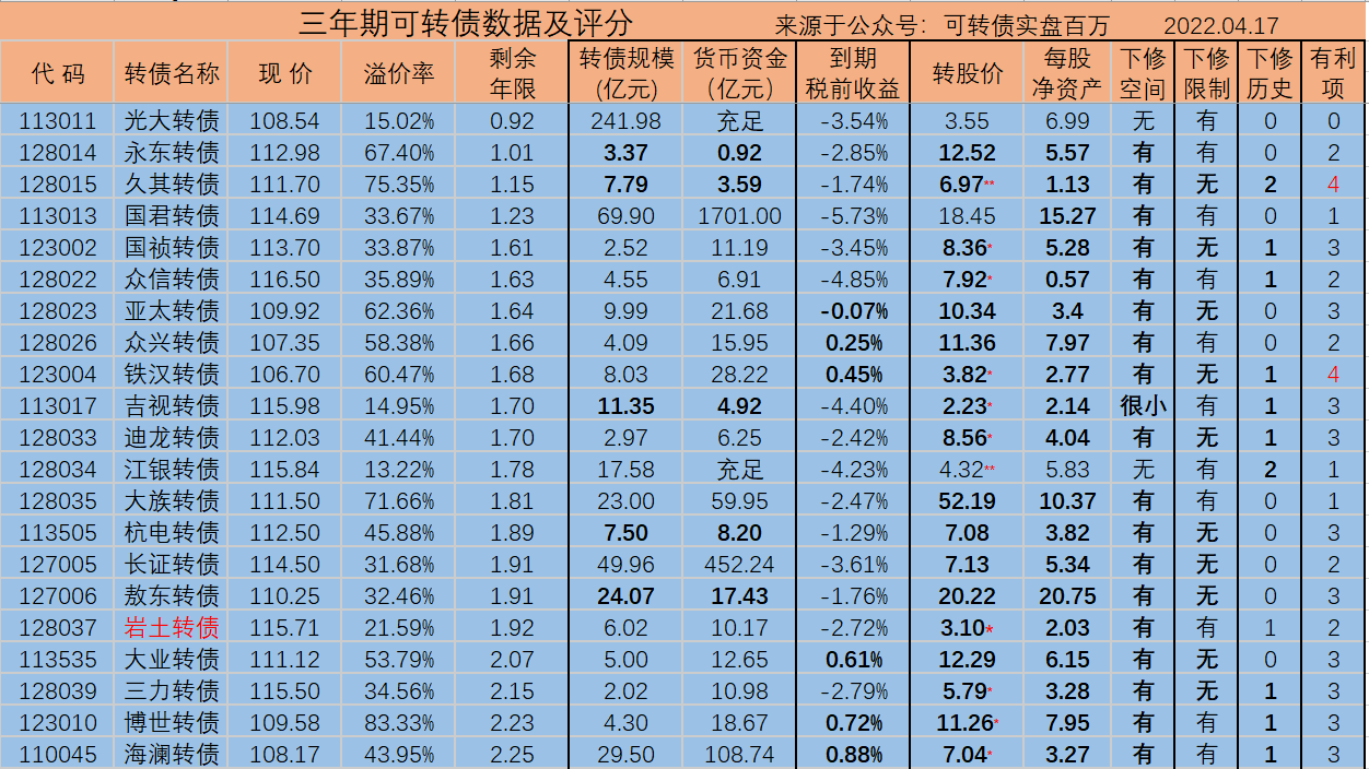 ③另一个需要关注的点,是表中那些货币资金小于转债规模的,更精准的数据需要去看财报。比如表中的永东转债(发了转2,有借新还旧的嫌疑,diss!)、吉视转债(我重点持仓的)、敖东转债、岩土转债(我重点持仓的)、华源转债、迪森转债(马上下修了,不建议参与)、海环转债和未来转债。