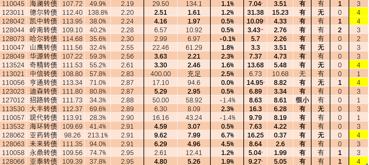 其中,尤其是几个规模小的,比如华源转债、只有3.6亿的盘子,海环4.59亿的盘子,亚泰4.8亿的盘子。