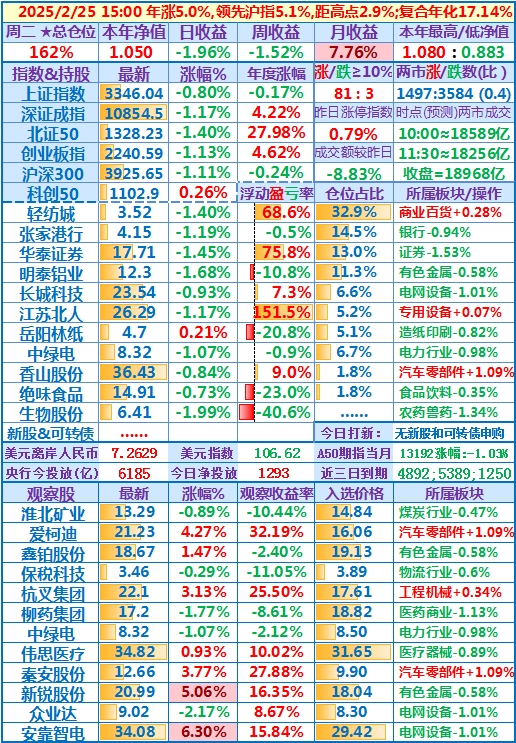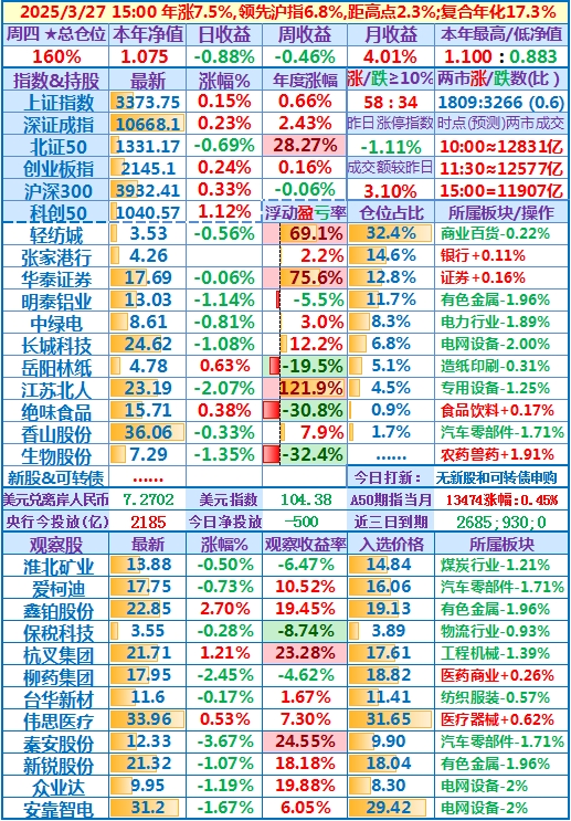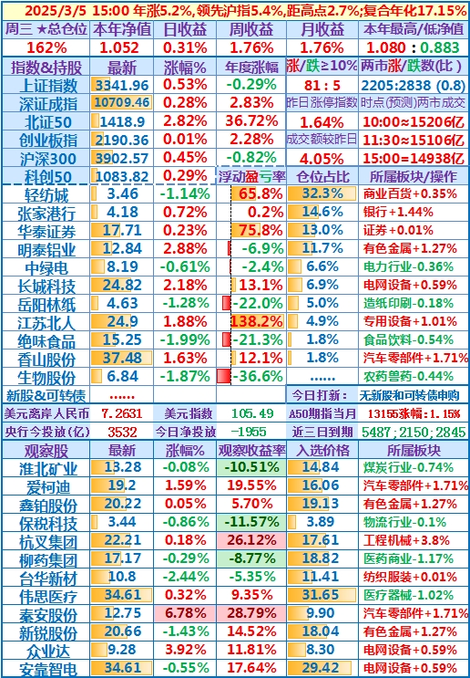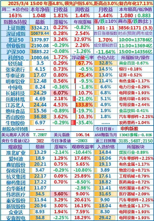 今日操作(观察):谨慎持股,近期仓位先保持在140%±5%……北交所有新股申购……