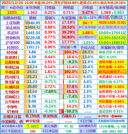 收盘,个股涨跌比2.04,两市成交额约2.71万亿。持股9涨2平2跌,本年净值和累计净值创新高.……