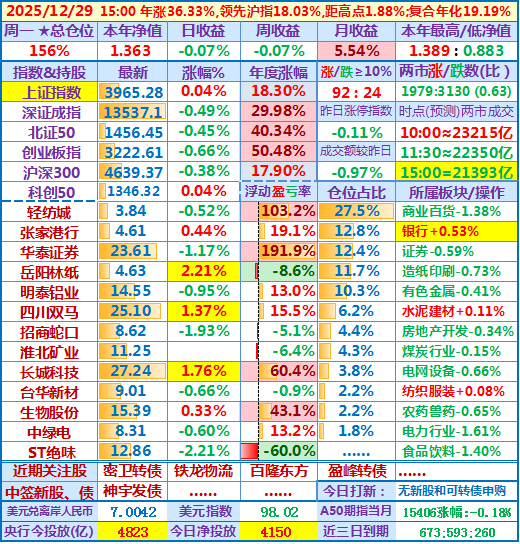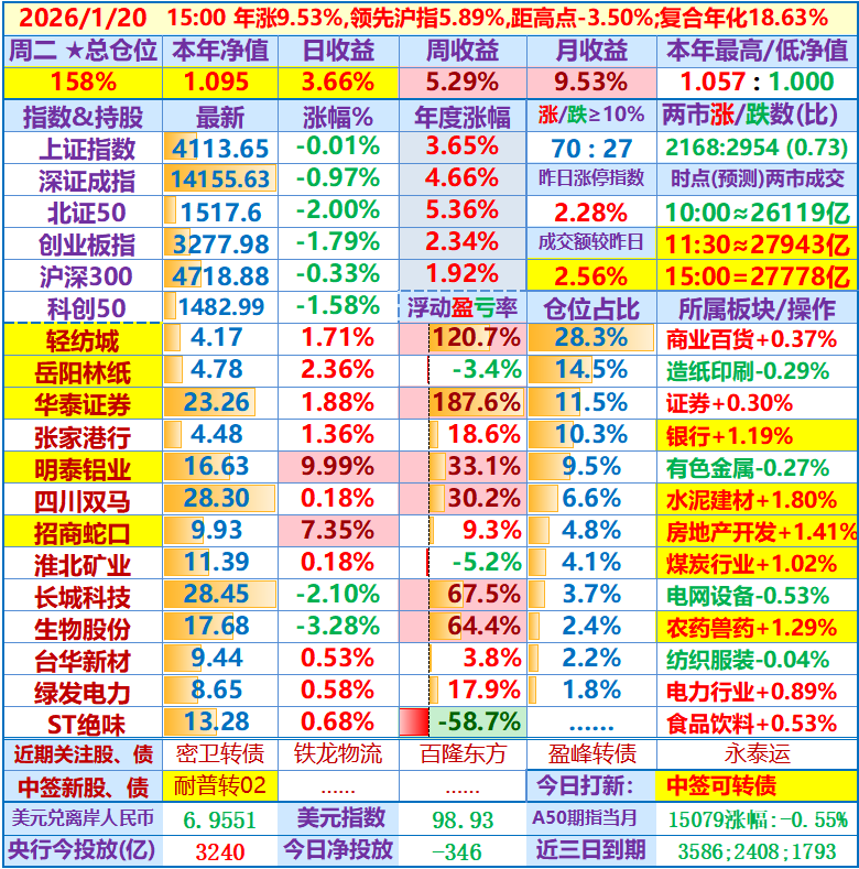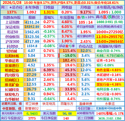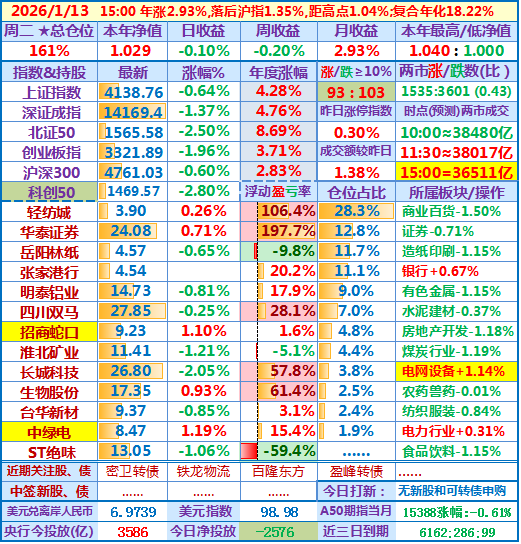 ★★操作(观察):继续持股;中签的可转债应流转债今天上市(收盘157.141元);北交所有新股申购……