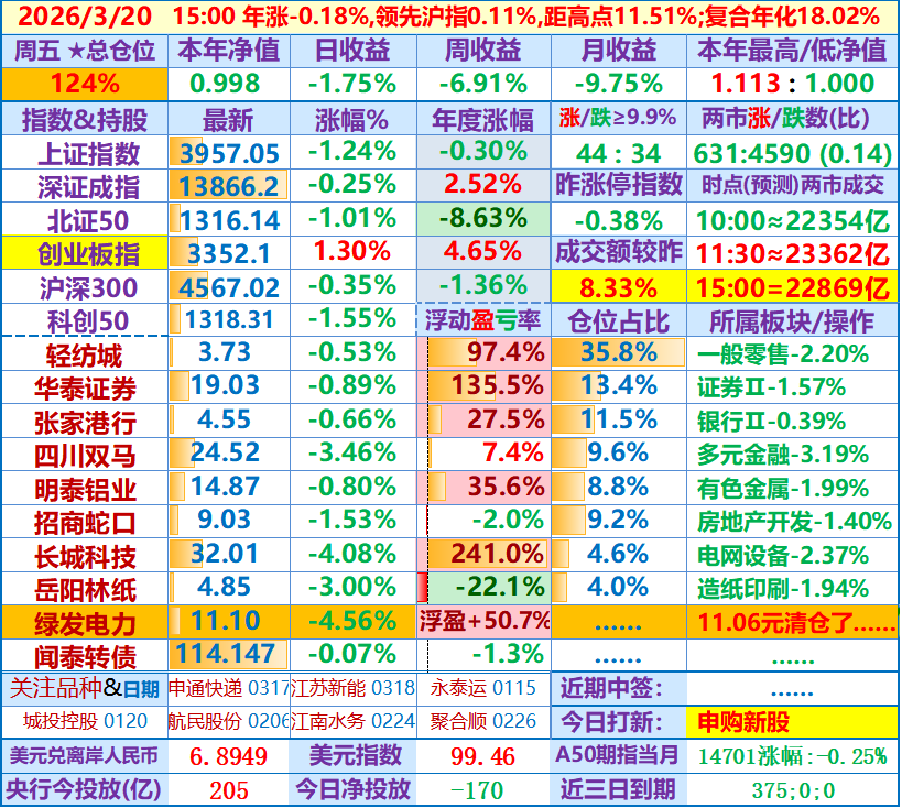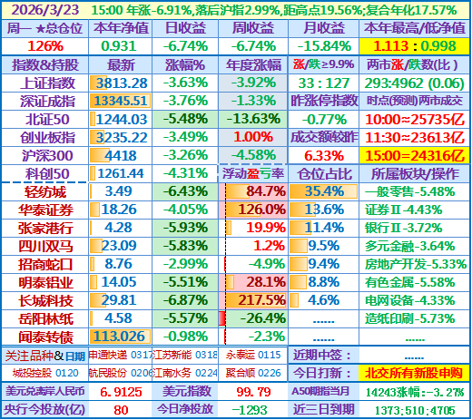 ★★2026-03-23:本年净值0.931,日收益-6.74%,仓位126%……