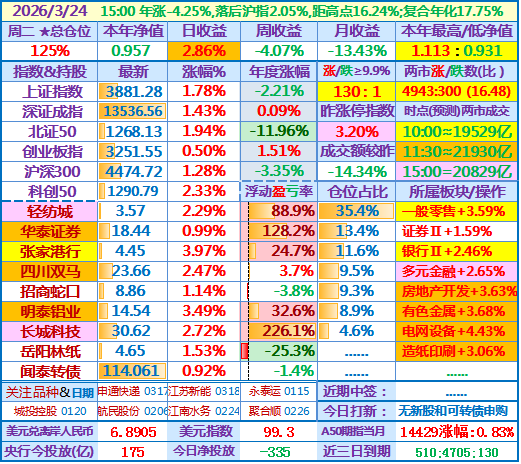 ★★2026-03-24:本年净值0.957,日收益+2.86%,仓位125%……