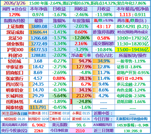 ★★2026-03-26:本年净值0.974,日收益-1.67%,仓位129%……