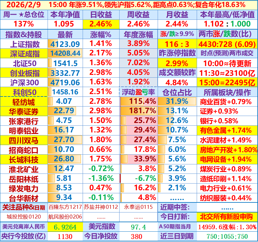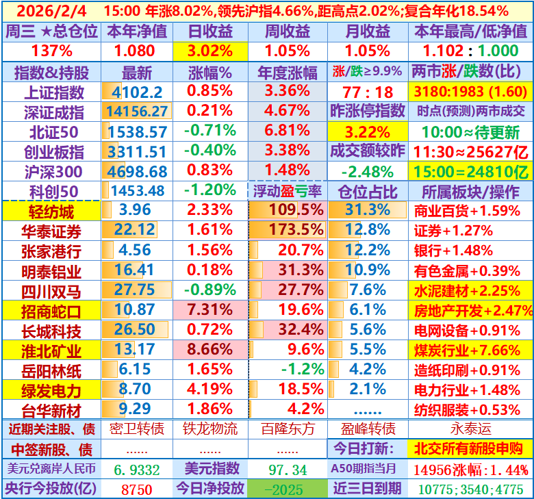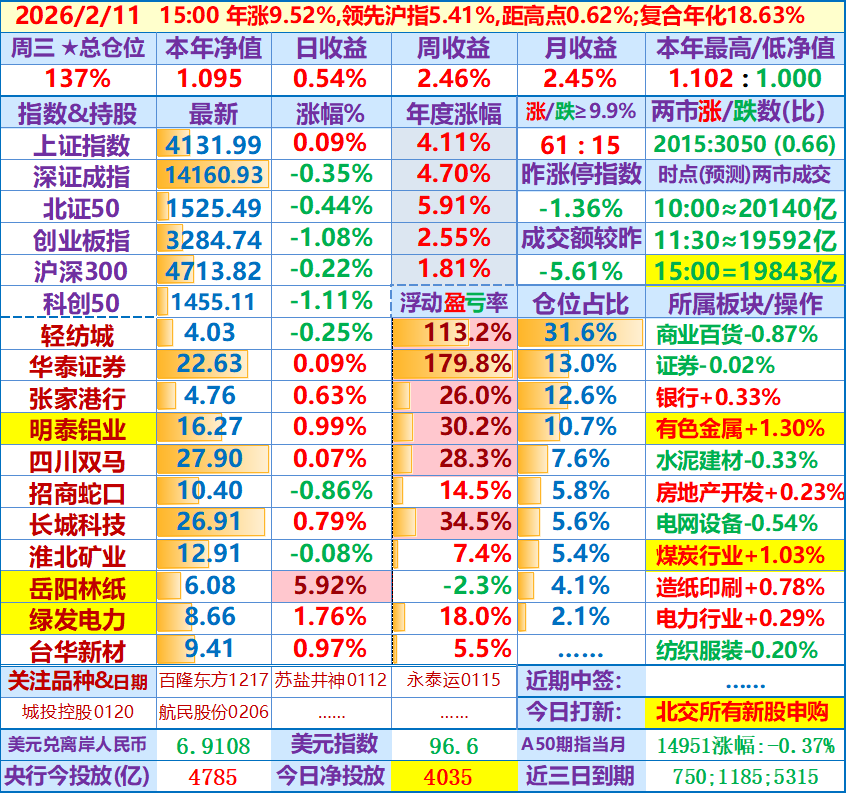 ★★2026-02-25:本年净值1.093,日收益+0.58%。仓位137%……