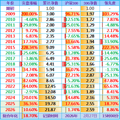 错误修正:蛇年最后一个交易日的图中所示的年涨幅不是+36.36%(这是2025年的年涨幅),正确的涨幅是+7.69%,2009年至今的复合年化收益率为+18.52%……