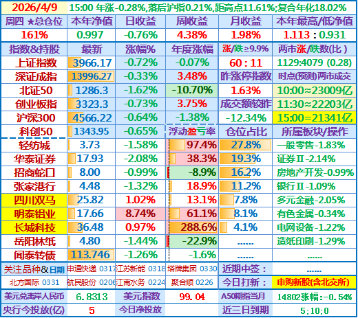 ★★操作(观察):持股待涨……今日北交所有新股申购……关注鹤21转债,可能低吸华泰证券、四川双马和岳阳林纸以补仓……轻纺城控股股东增持计划实施完毕……