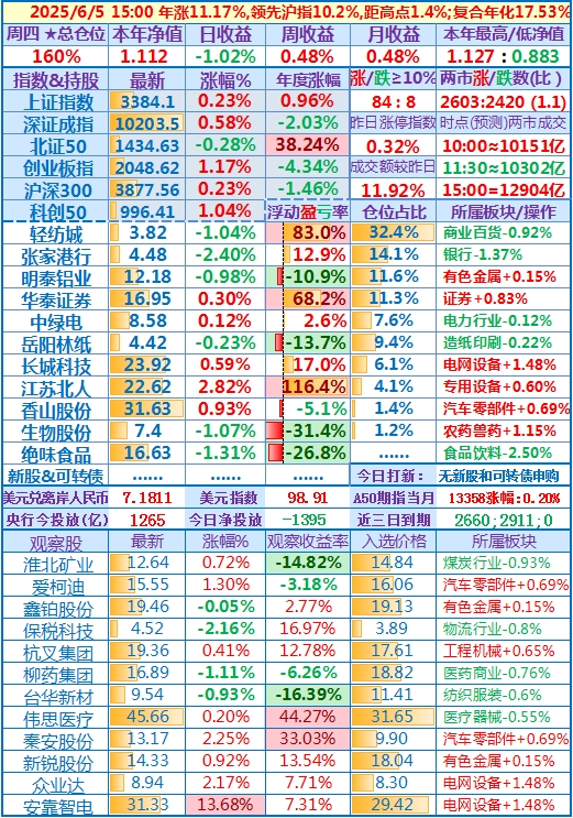 2025-05-23:本年净值1.062,日收益-2.47%,周收益-2.83%,月收益+5.23%,年收益+6.25%,仓位159%……