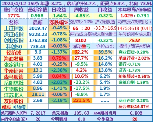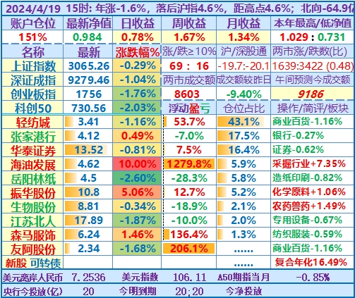 ★★操作:申购可转债;中签可转债……岳阳林纸涨超6%,浮盈转正;第一重仓股轻纺城今天大涨4.68%……观察股中的天富能源今日继续创出入选后新高……