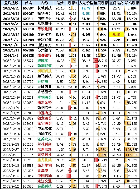 ★★操作:无……机器人板块爆发,自持股中的江苏北人领涨(浮盈转正了),华泰证券和长城科技次之……观察股中的长城科技在盘中创出入选后新高(见图二),预备的观察股的有友食品盘中创出阶段新高,绝味食品临时调入预备观察股……