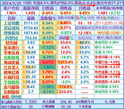 2024-10-31:本年净值1.201,日收益+0.23%,月收益-2.79%(本月收官),年收益+20.09%,仓位149%……