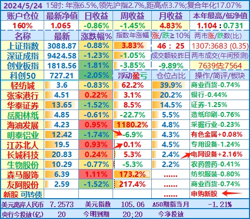 今日操作(观察):谨慎持股,近期仓位先保持在140%±5%……申购新股……
