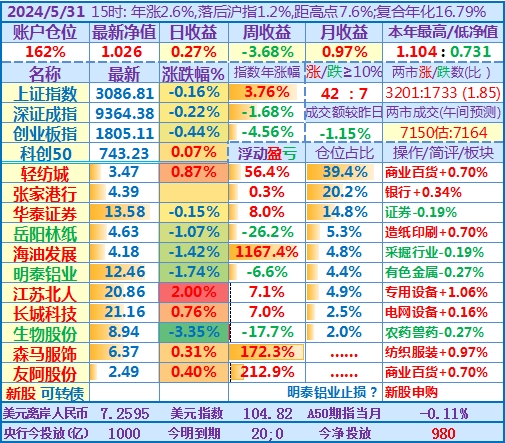 ★★操作:无……本周收官,周收益创本年之最,除了申购新股其他无操作,账户中签的新股和可转债应该能为账户下周收益略做一点贡献。