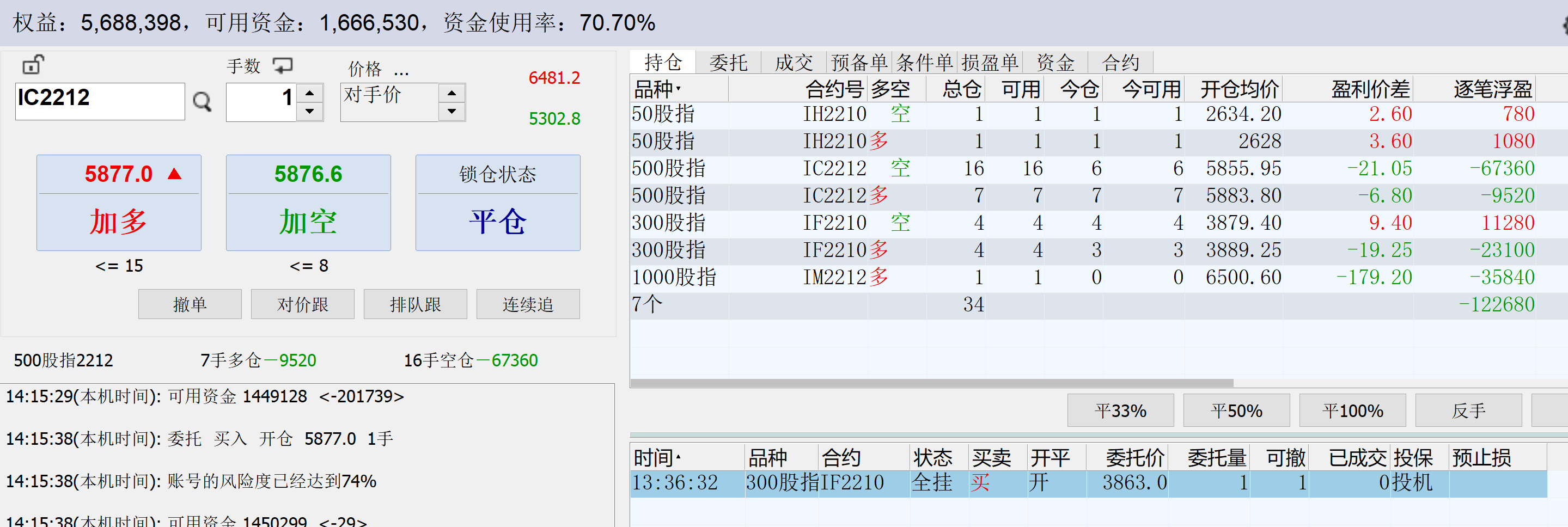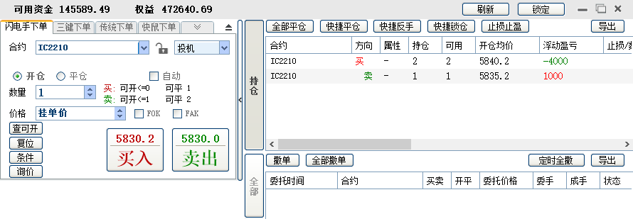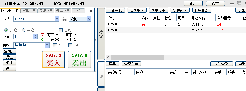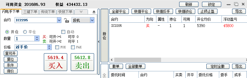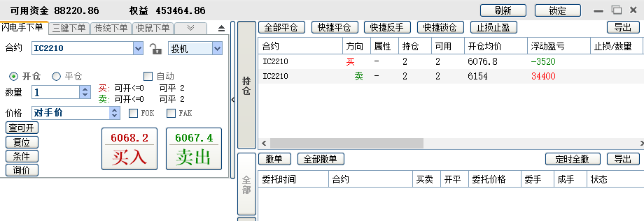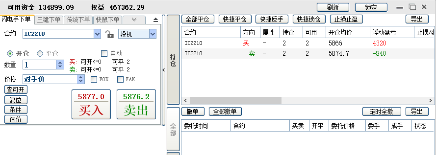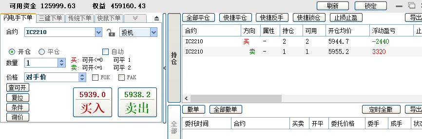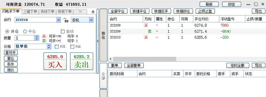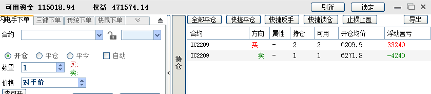 2、1手吃贴水,另外加1手每天对锁做日内,可多可空。这个阶段从4月份开始,刚做了一个月,目前还在继续。这一个月做下来,感觉稳定性有下降,加了做空之后,容易忘记做T的本心。3月底账户加了10万,这样可以有开2手的保证金。决定这样做的另一个原因是3月9日那个尖底时,账户连1手保证金都不够了,如果到尾盘还不够,我这个小期货交易商会强平,有2手保证金,至少保证极端行情能凑够1手的保证金。