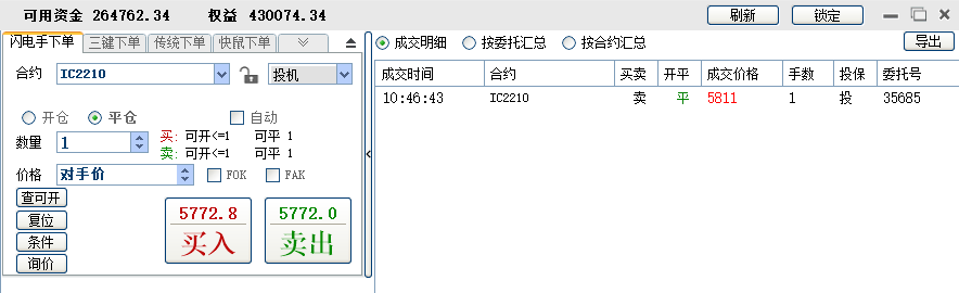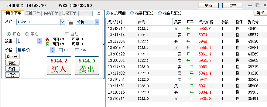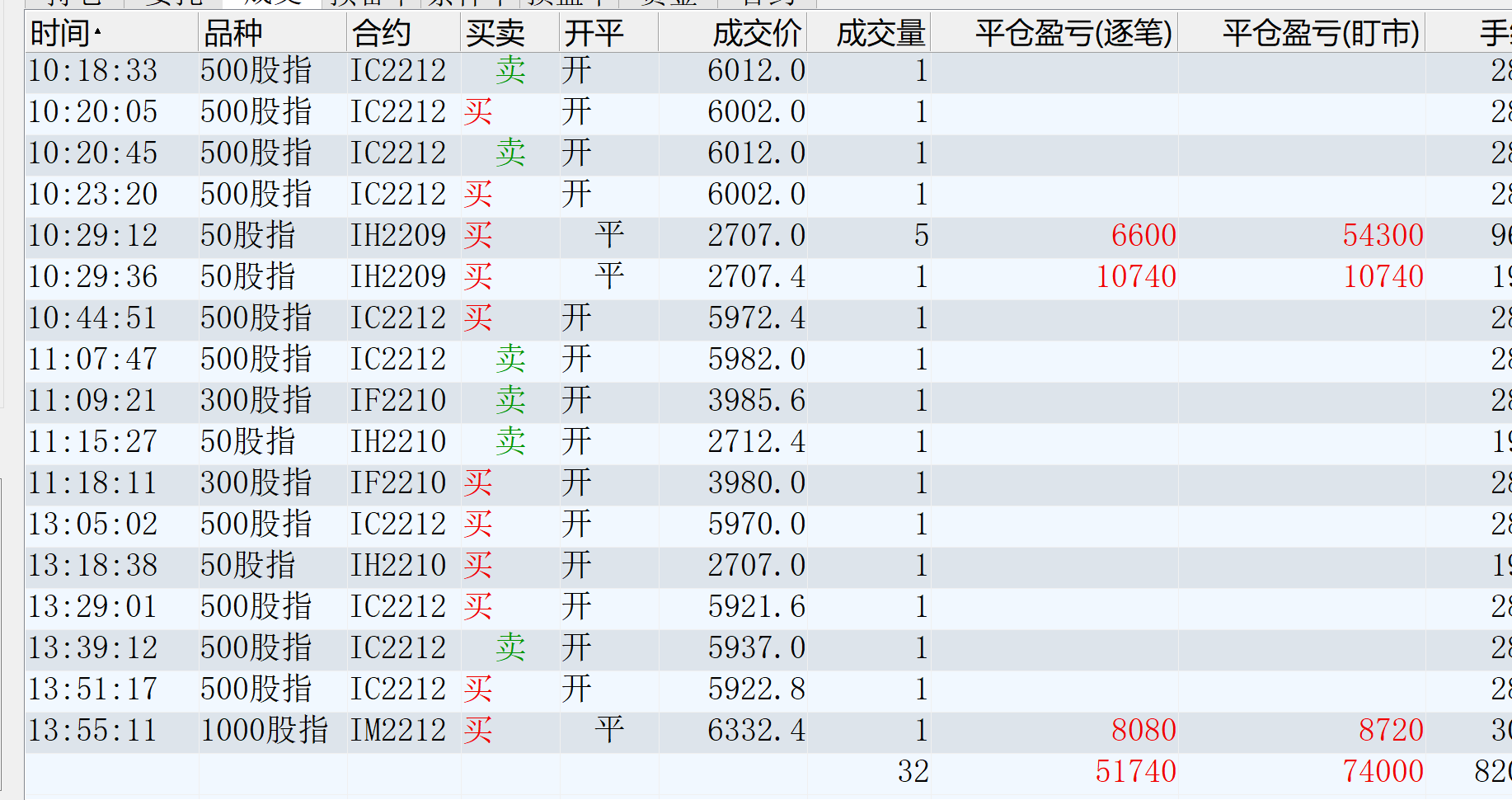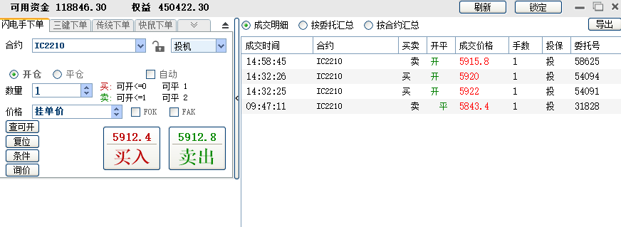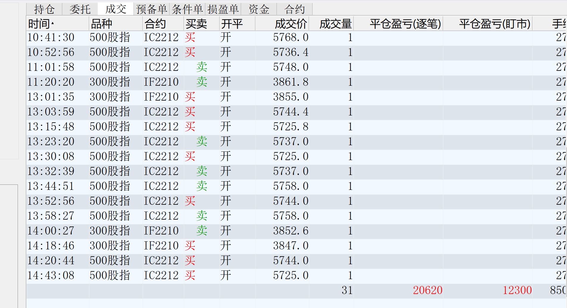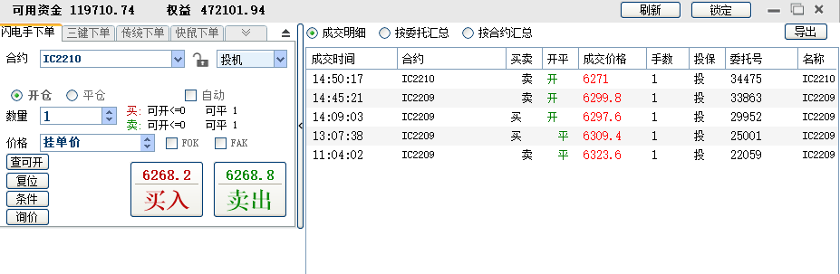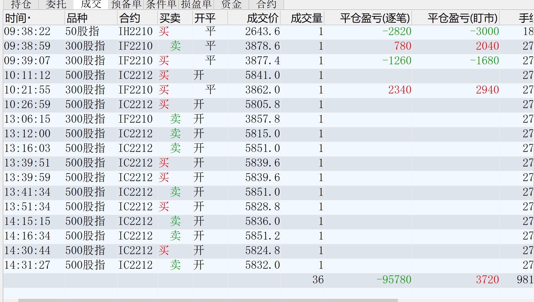 修身兄的收盘最后一笔IC10平仓,是不是15倍手续费啊?