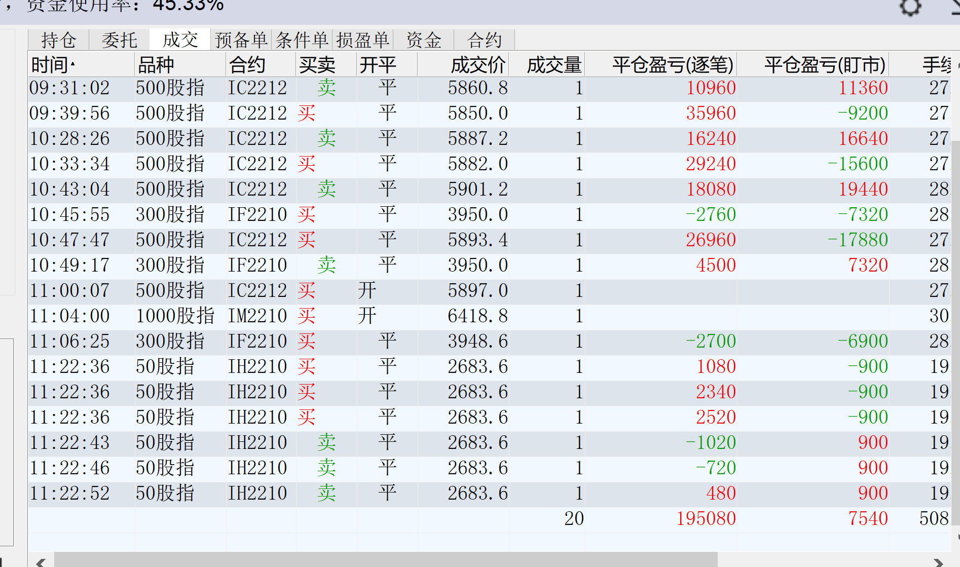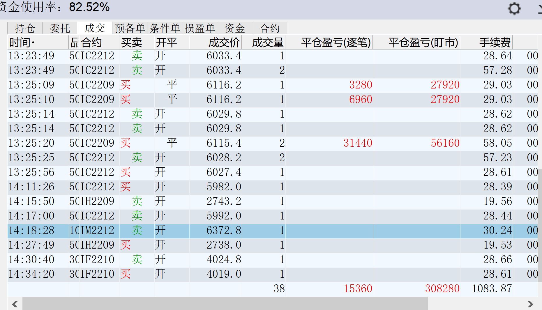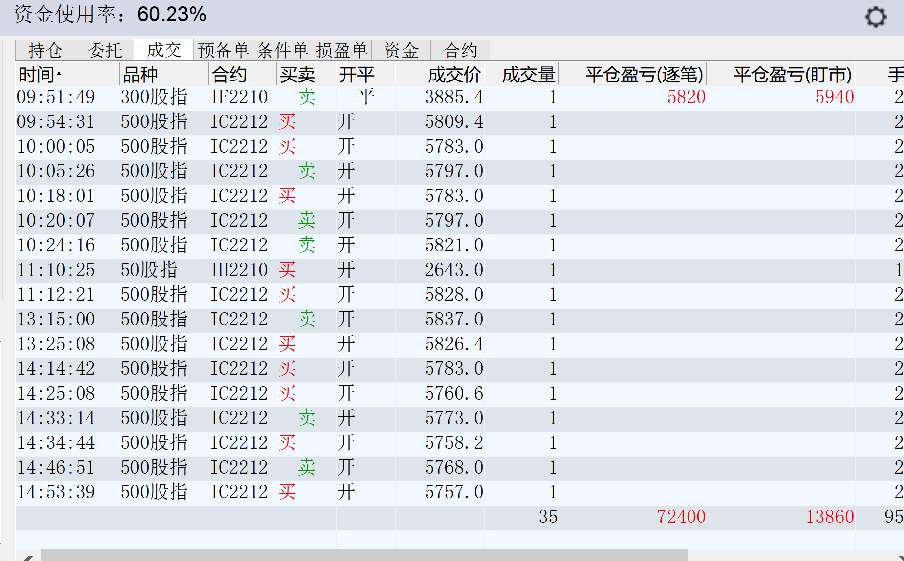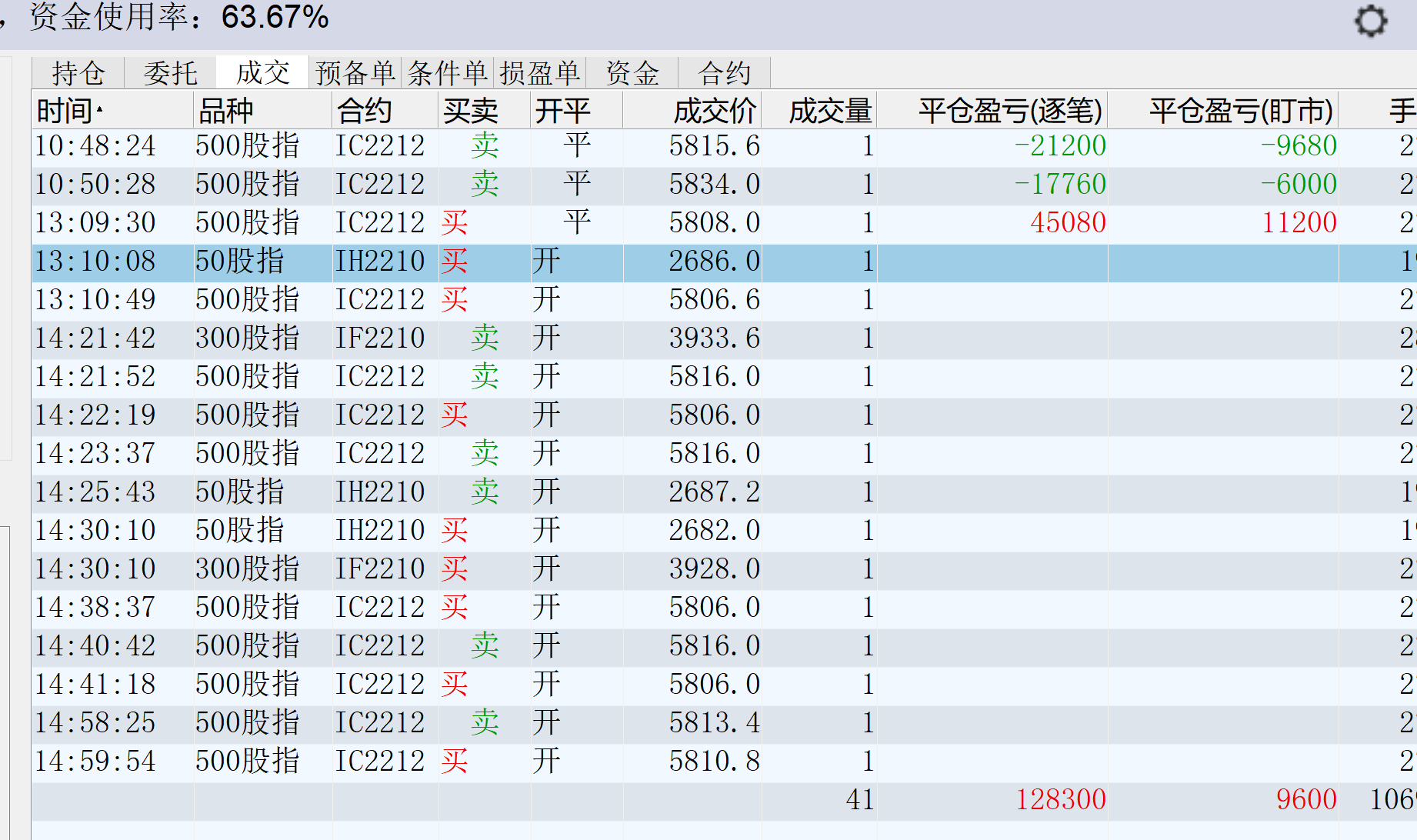 修身兄的收盘最后一笔IC10平仓,是不是15倍手续费啊?