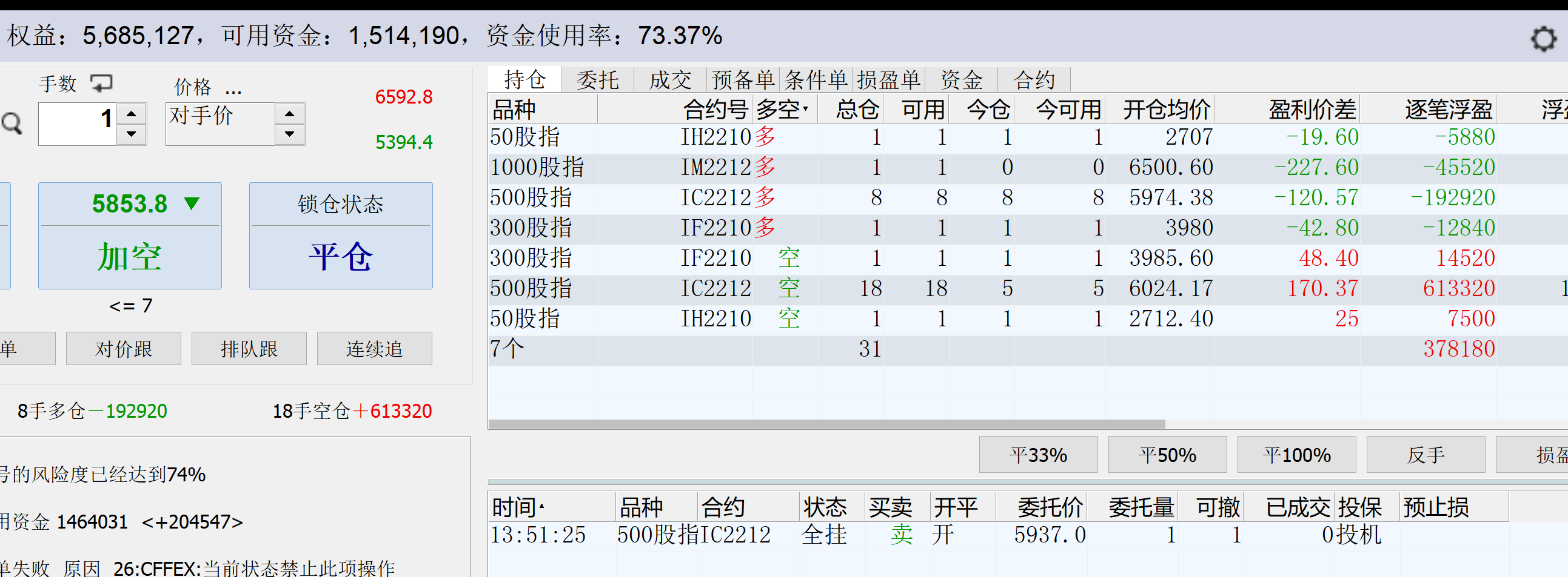 今天状态差,中午收盘前满开空单,收盘后纳指发疯爆拉,搞得我心情浮荡,下午一通乱操作,gg。昏头搭脑的,对锁仓都懒得开了。