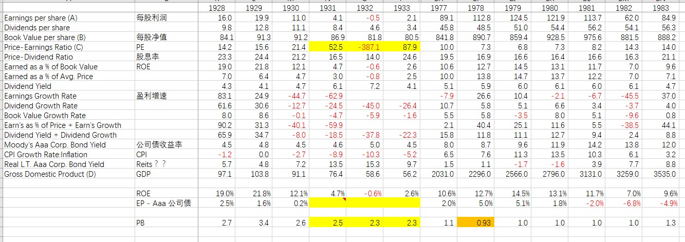 我查了一下美国标普500的PB历史极值的年度数据(1920年至今),最低点在1978年,是 0.93倍PB