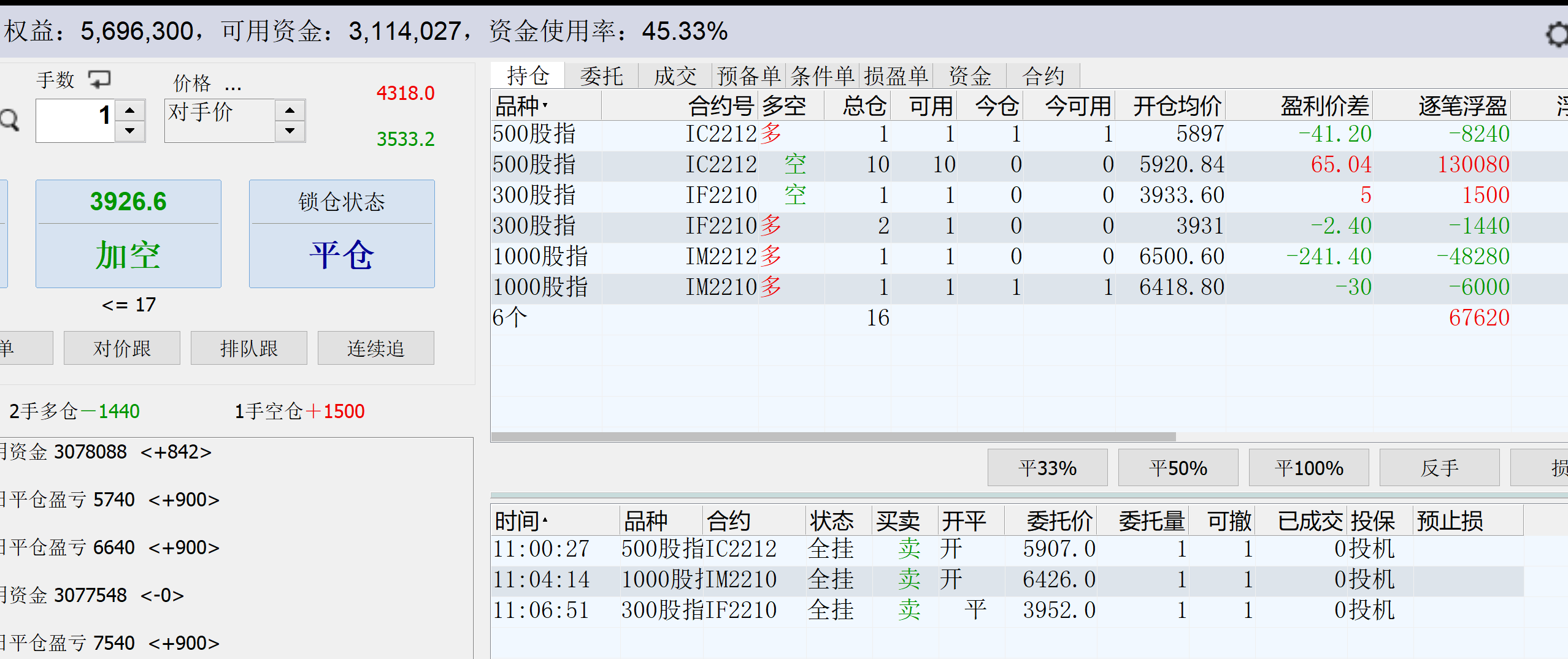 IM2211的贴水还没有2303的贴水年化高,不如直接干远月。好久没看你的贴子,你是出金了吗?资金还是在50左右