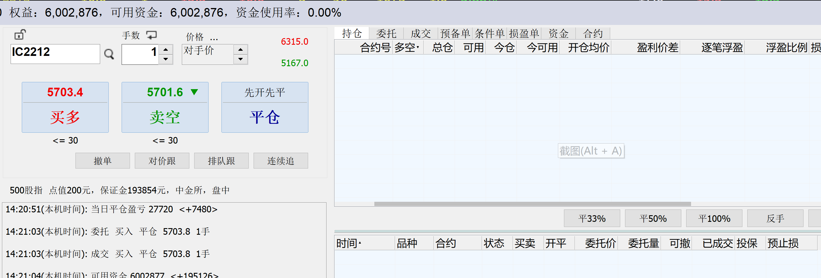 今天下午北上资金快速大幅流出,加上大盘横盘时间太长,两点后的那波下杀,担心会走出冲高回落走势,这种走势前面两个多月也发生过多次,存在这种可能性。所以这里想等期指反抽后先出来看看,等一波回落后如果企稳再上,如果下去,那就尾盘买回,当时这个账户还没操作过,有足够的日内低佣实验机会。