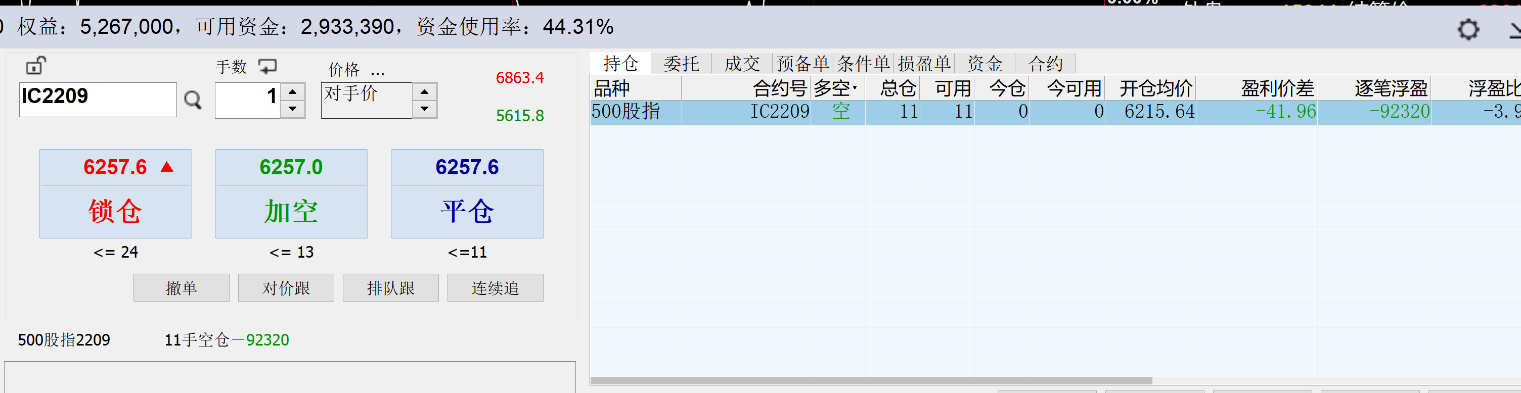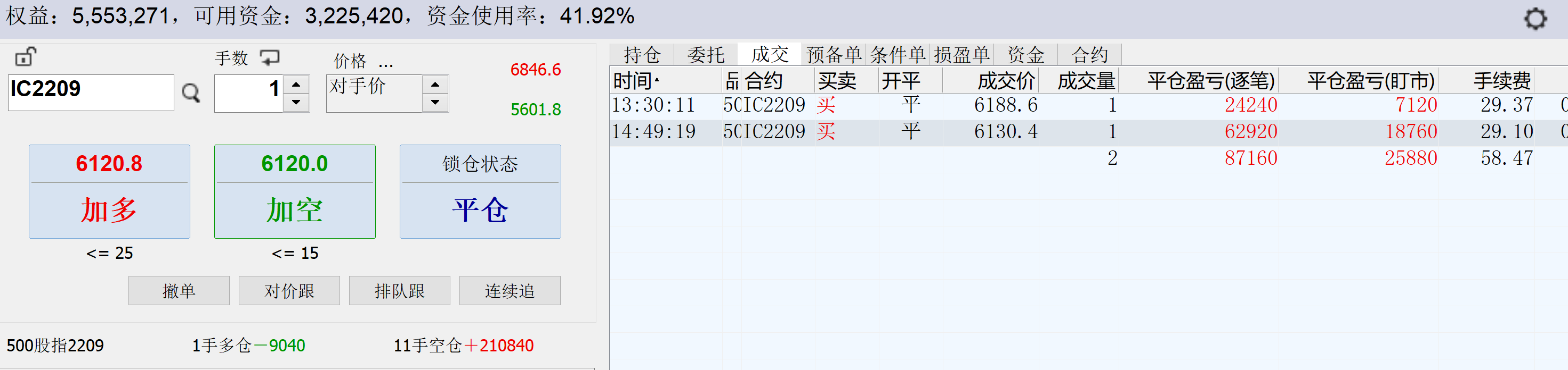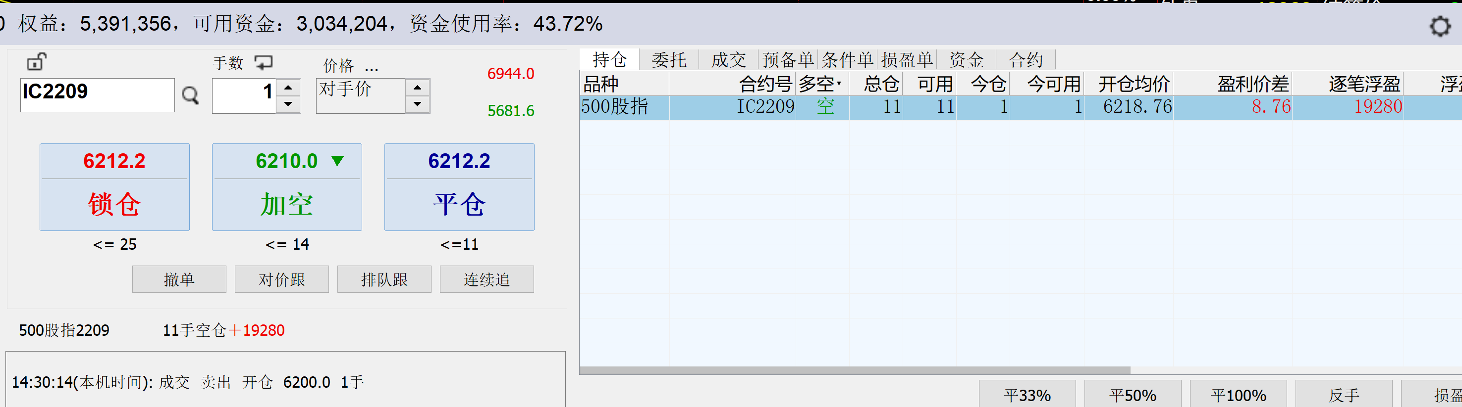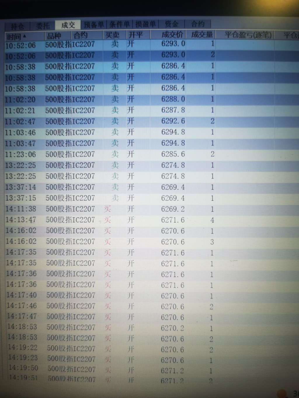 11:14:45 IC2207 买 平仓 6289 3 普通成交