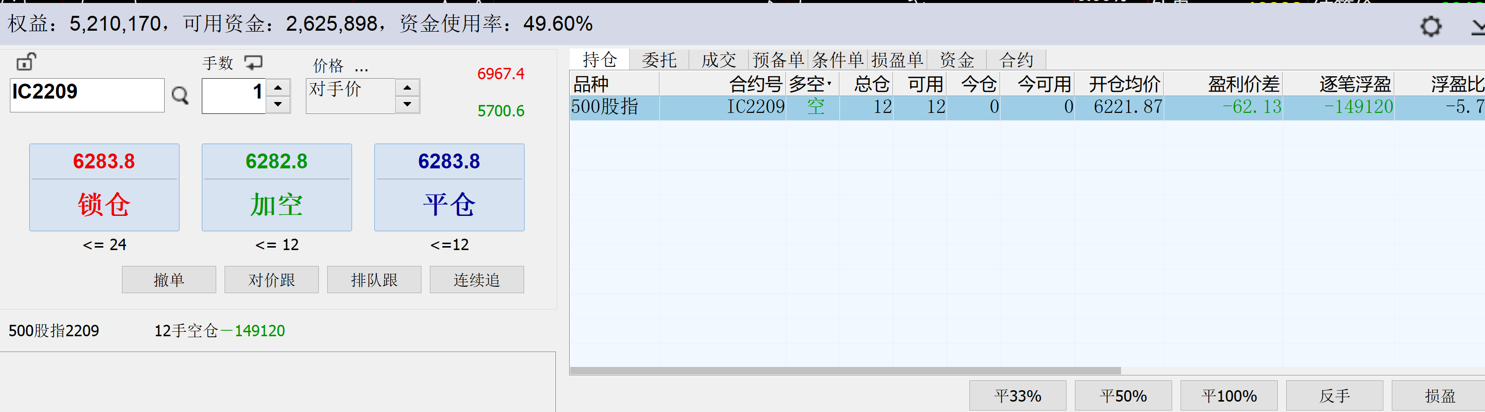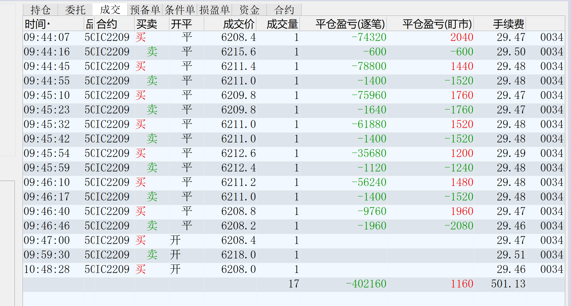 9:51:02 IC2207 买 平仓 6282.6 2