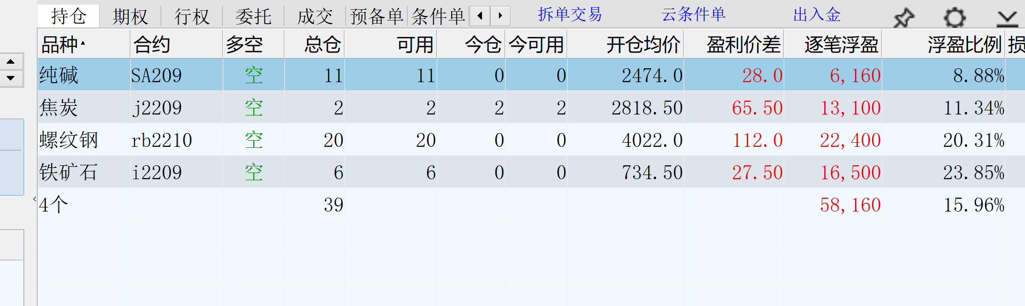 今天看到2207是升水的,开空比较有优势,又开了2207的空