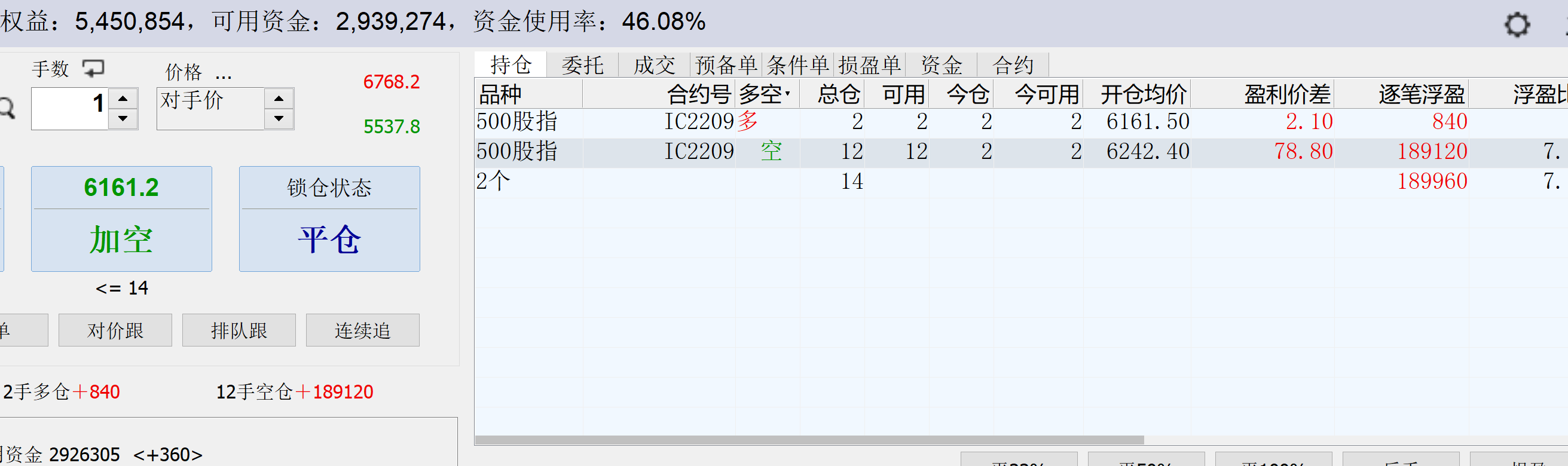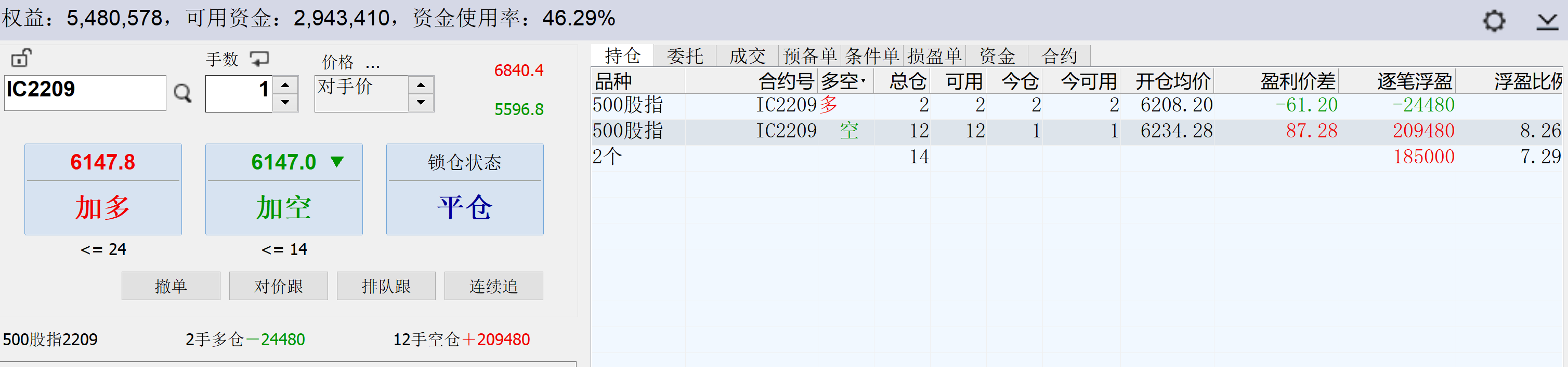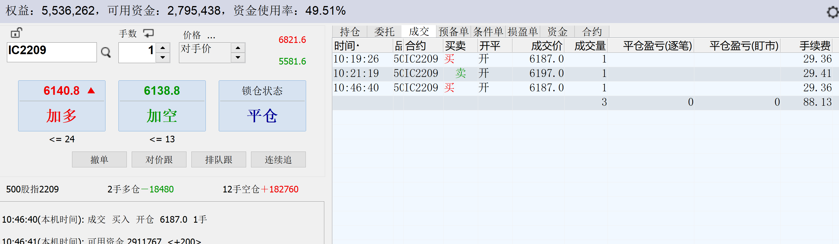 13:18:54 IC2209 卖 开仓 6172.6 1
