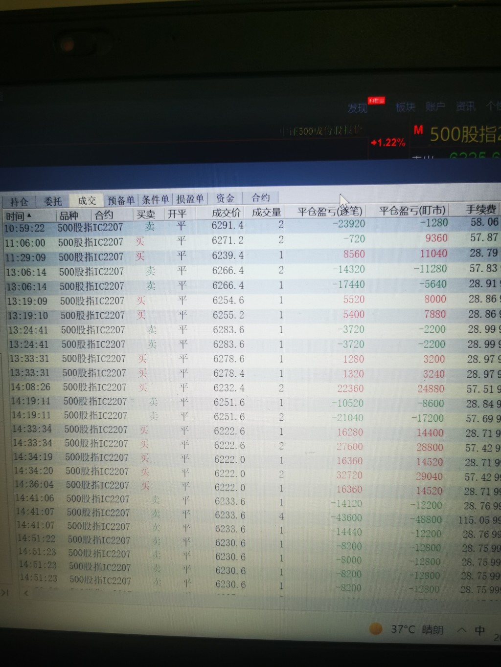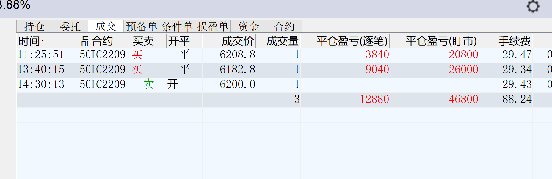 10:21:53 IC2207 卖 平仓 6314.6 3 普通成交