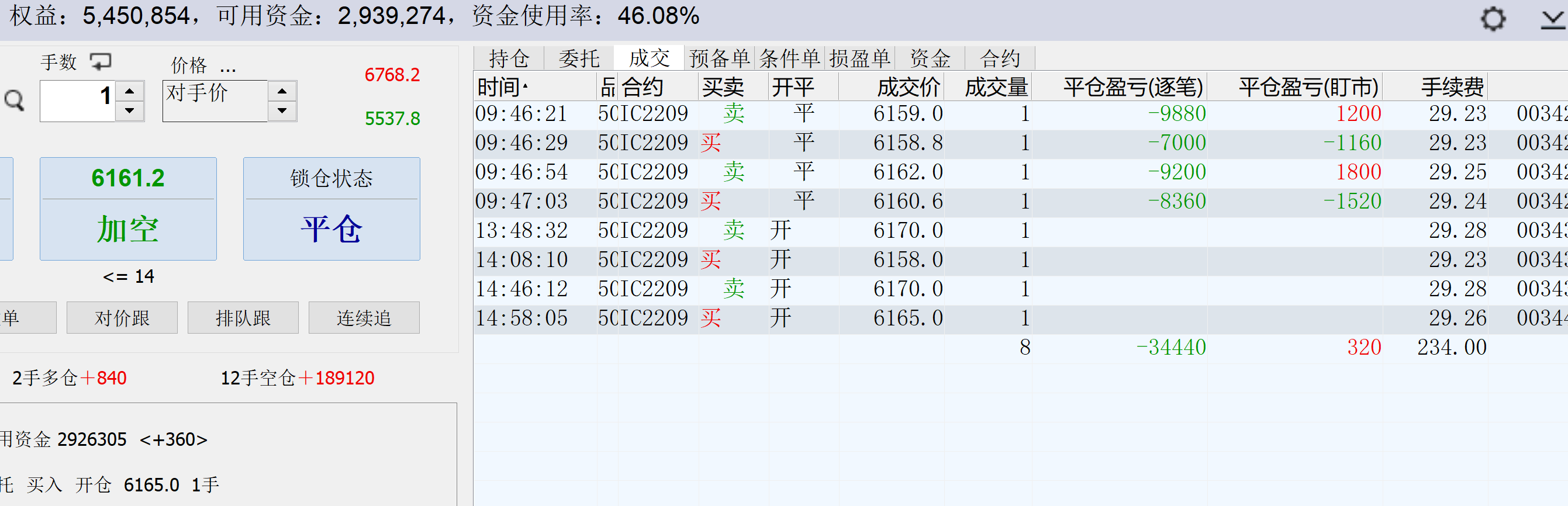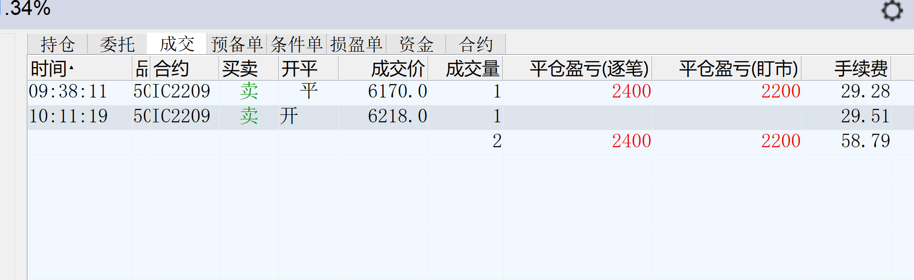 9:34:16 IC2207 卖 平仓 6301.2 2