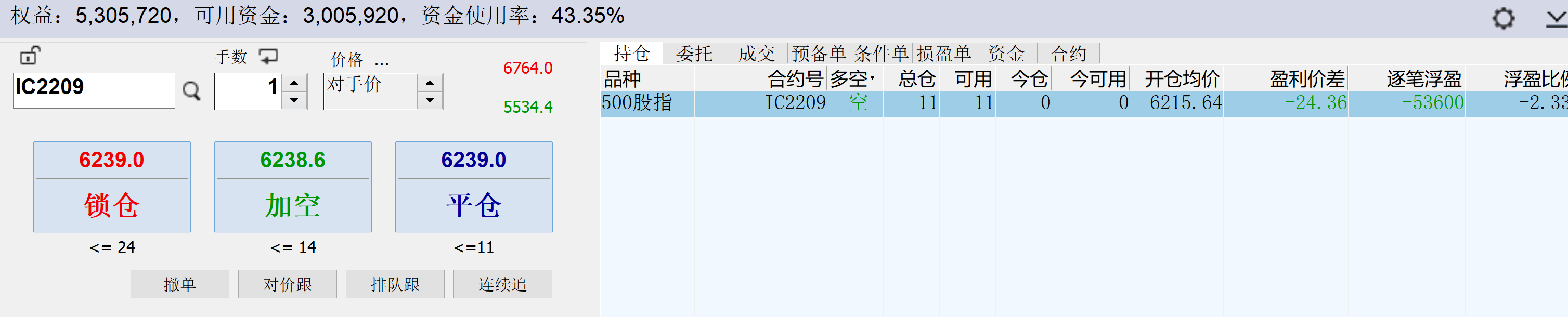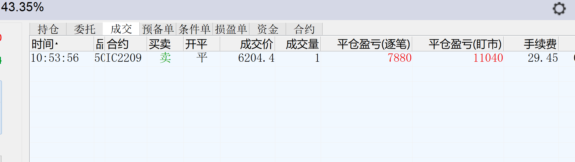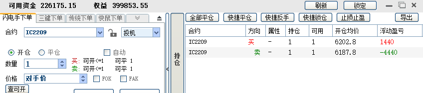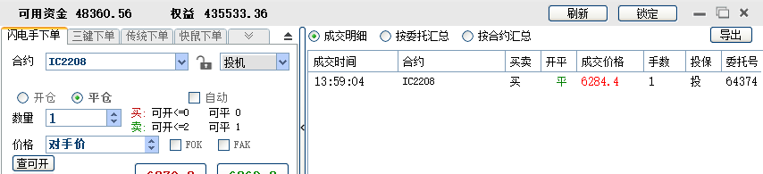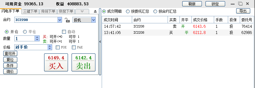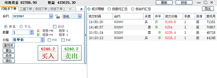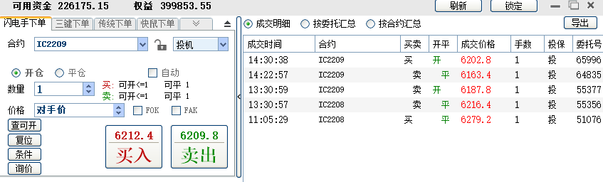 11:04:35 IC2208 买 开仓 6233.4 1 普通成交