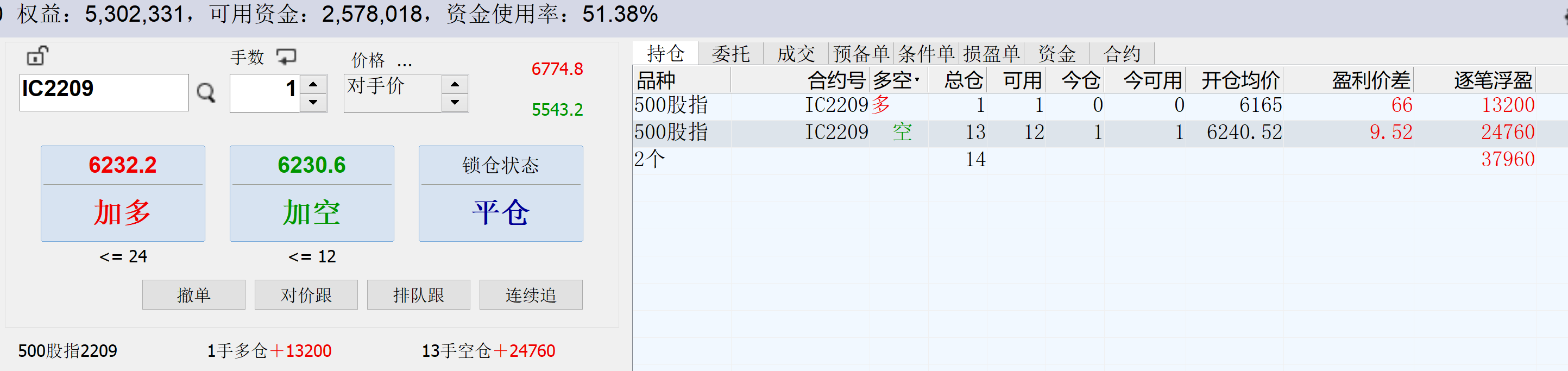 13:18:53 IC2209 卖 开仓 6172.6 1
