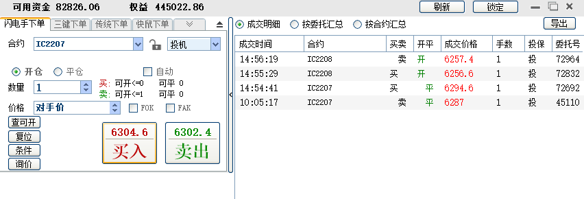 10:26:02 IC2207 买 开 6306.2 1 投机