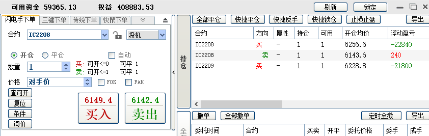 10:22:36 IC2208 买 开仓 6170.4 1 投机