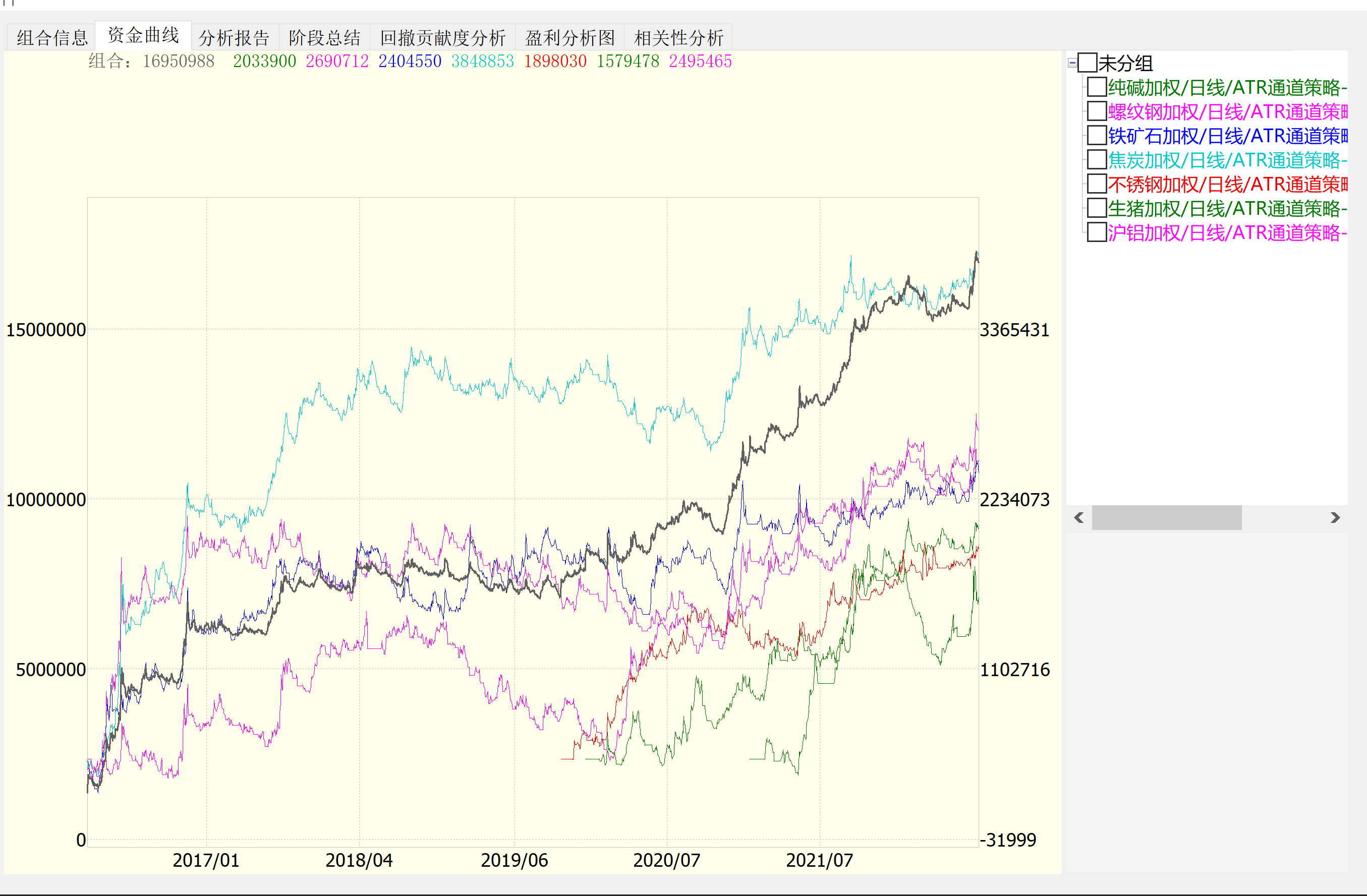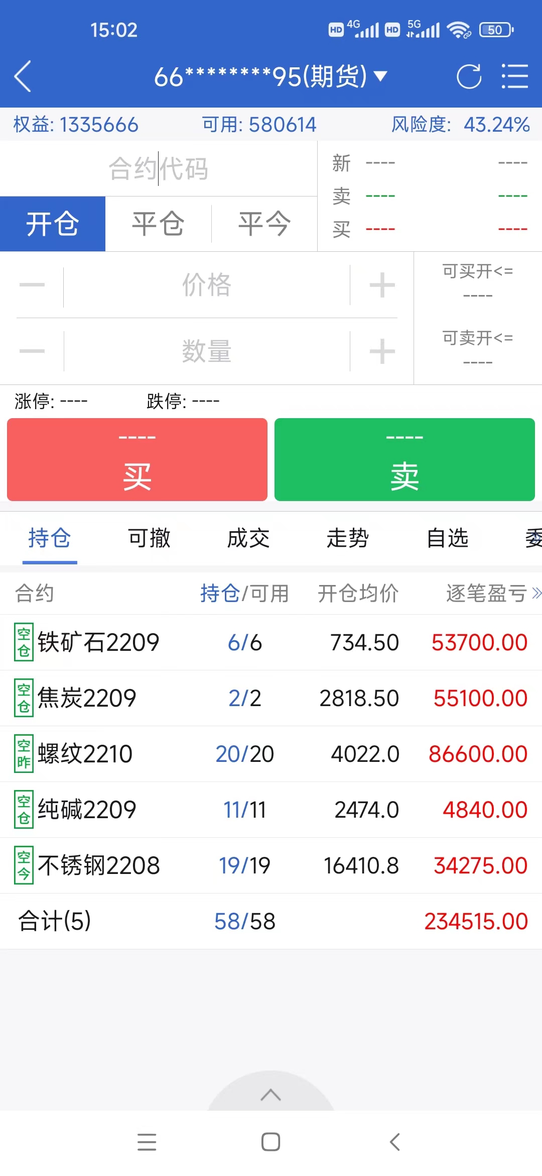 另一个期货账户,昨天开始量化实盘,投入110万,现在浮盈5万多。
