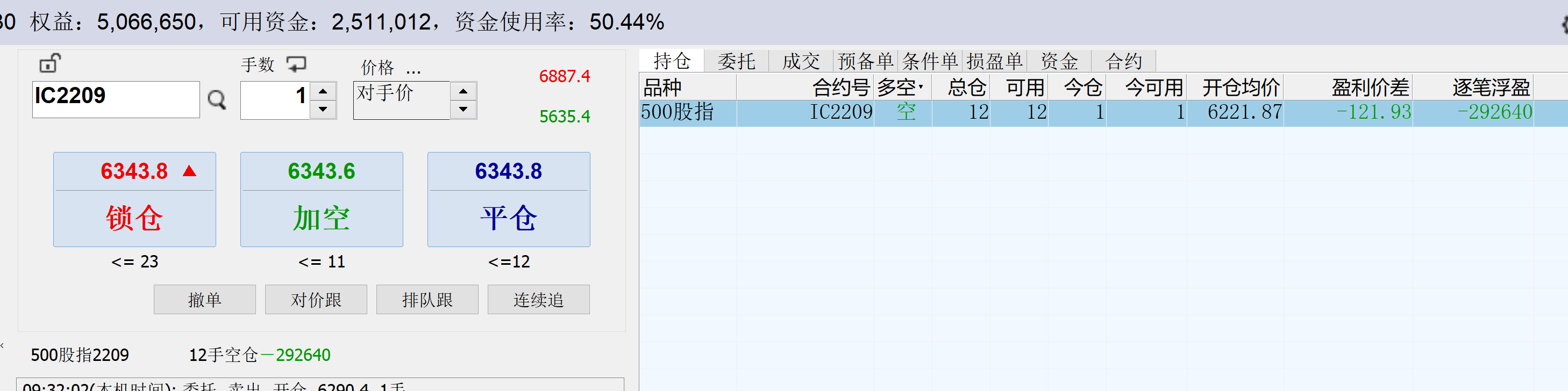 10:16:32 IC2207 卖 开 6292.2 1 投机