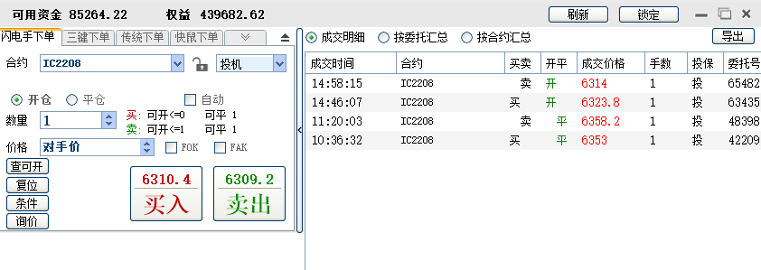 14:57:32 IC2208 卖 开仓 6266.2 1 普通成交