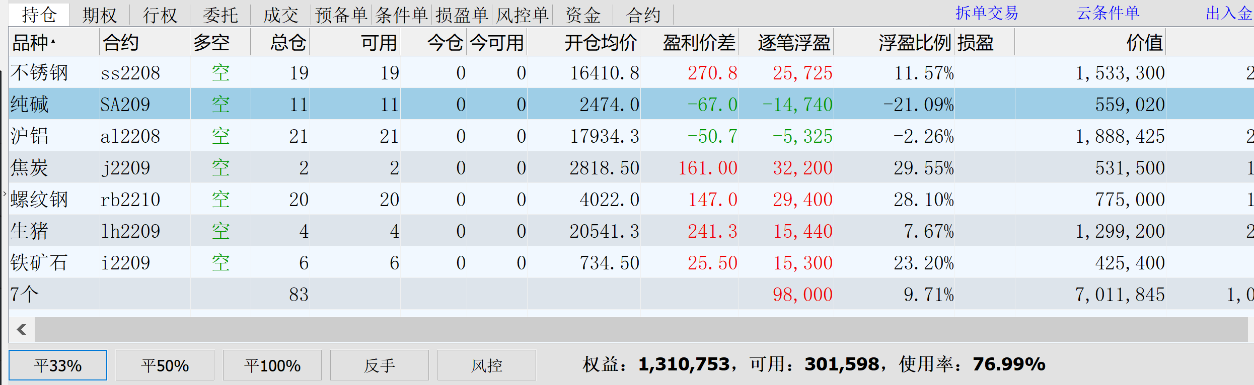 小账户量化成绩不错,浮盈23万了,要是小账户盈利和大账户亏损打平。。那真是玩了个寂寞。。