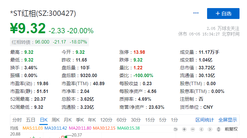 3,红相股份(SZ:300427) 突然发一个预计触发下修公告。