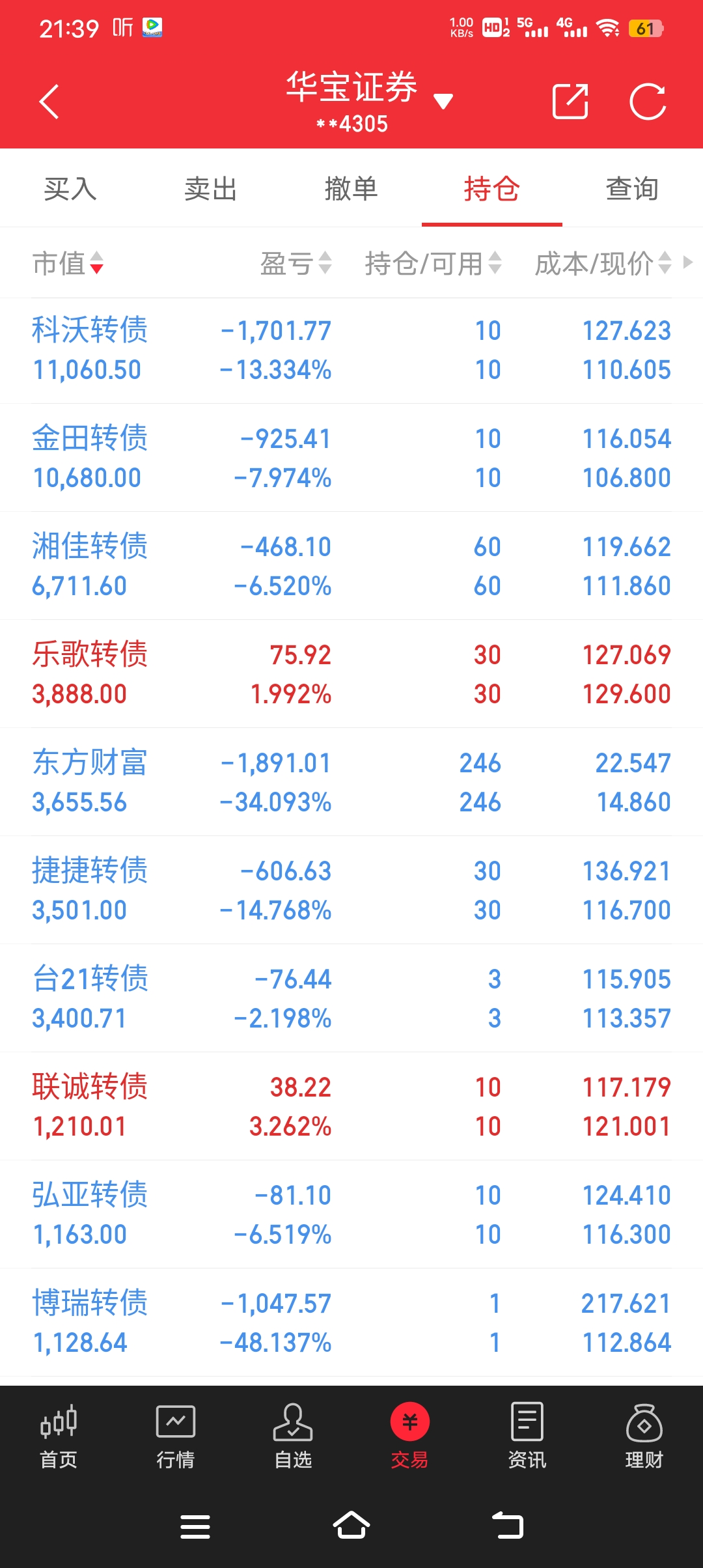 2,转债账户t飞了东时。现在基本仓里的满屏皆绿,回本就卖了。