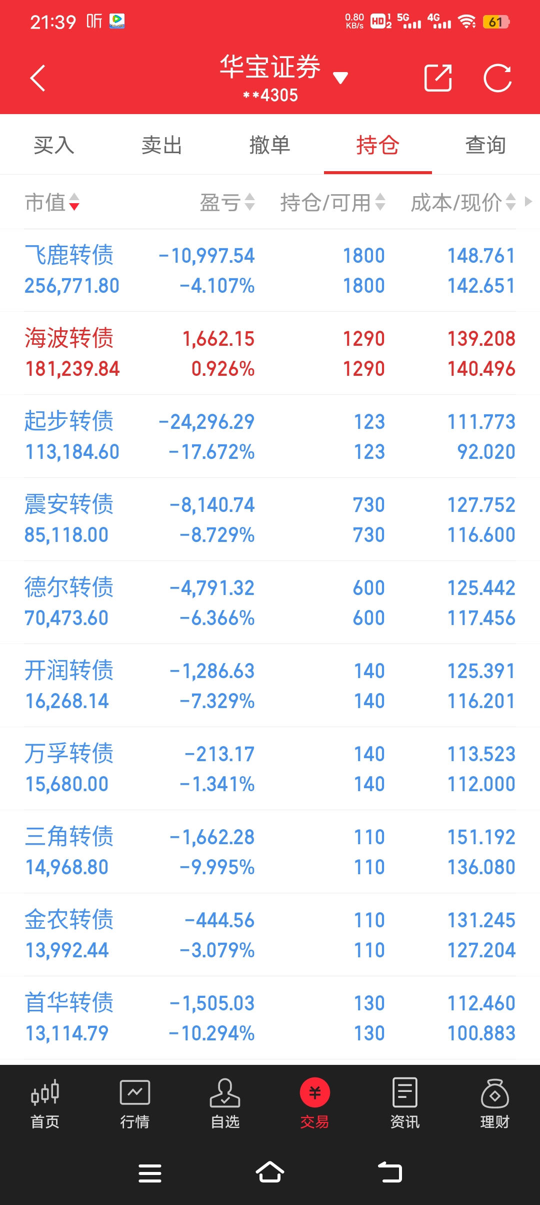 2,起步转债,是目前发生浮亏最多的一只。2.2万元。税后收益率7%度。无所谓了。拿着吧。2年后可以回售。跟上市公司打了好几个电话了,退市是不太可能的。