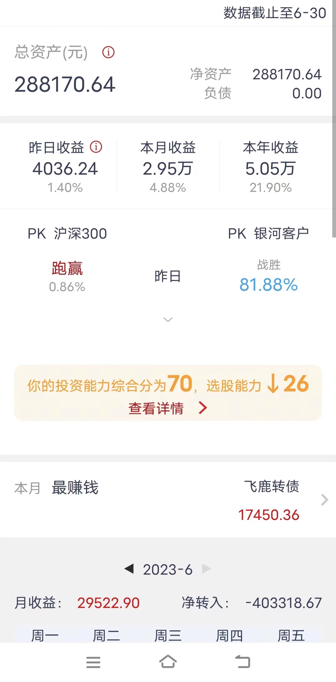 上半年可转债盈利6w+,期权盈利0.8w。期指亏4k。