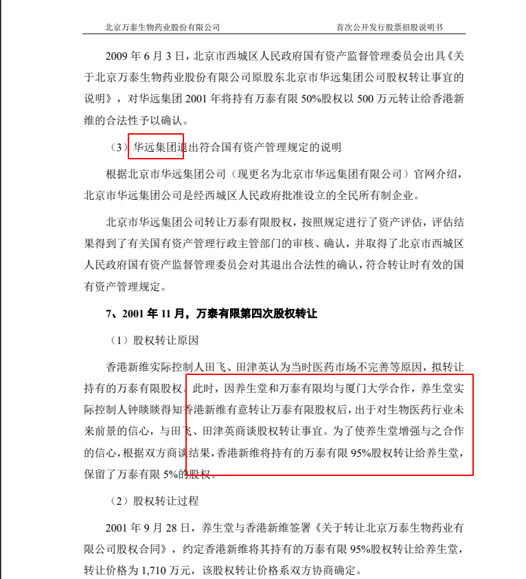 香港新维实际控制人田飞、田津英认为当时医药市场不完善等原因,拟转让 持有的万泰有限股权。此时,因养生堂和万泰有限均与厦门大学合作,养生堂实 际控制人钟睒睒得知香港新维有意转让万泰有限股权后,出于对生物医药行业未 来前景的信心,与田飞、田津英商谈股权转让事宜。