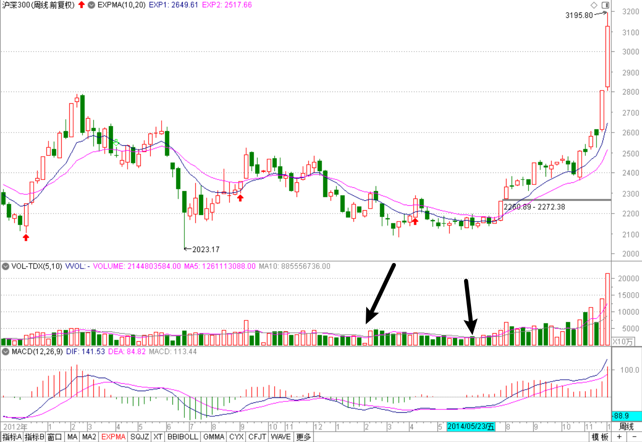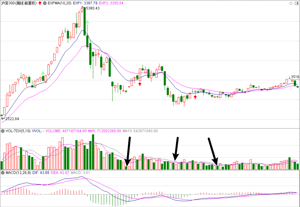 交易量低迷,跑的跑光了,套牢的懒得卖了,持币的还不敢买。指数波动越来越小,都是做短波段的人。放量上涨扫光所有短线客,恢复市场信心,重新启动行情。结论可能是对的,但论据肯定是错的,你看你选的那几个周线成交量低点,都是假期前后,那一周交易天数就少。。。。