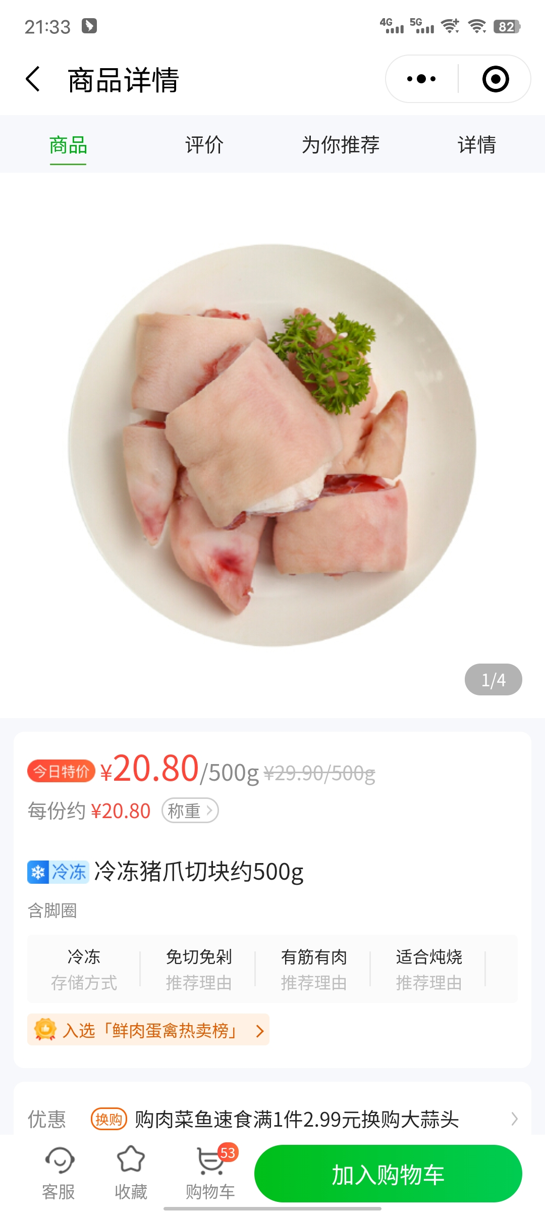 多多买菜上生猪肘1公斤卖19.9,回家自己炖一下不比这个解馋?