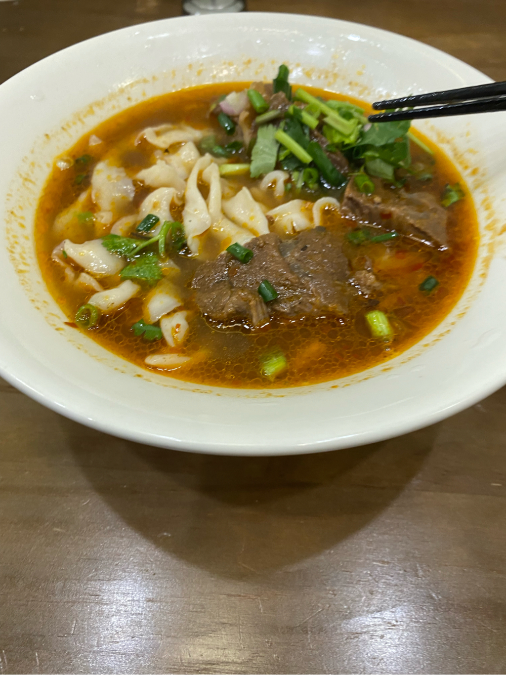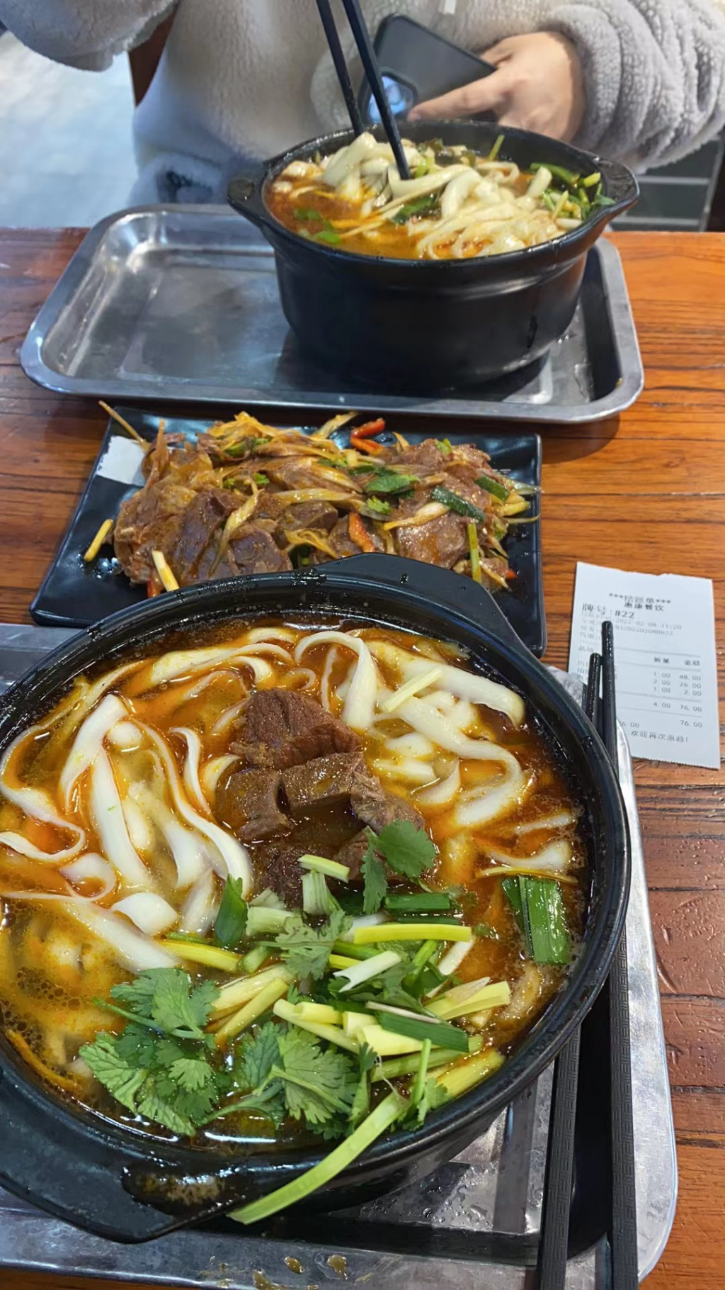 另外一家店砂锅面,大碗13,酸牛肉四十多