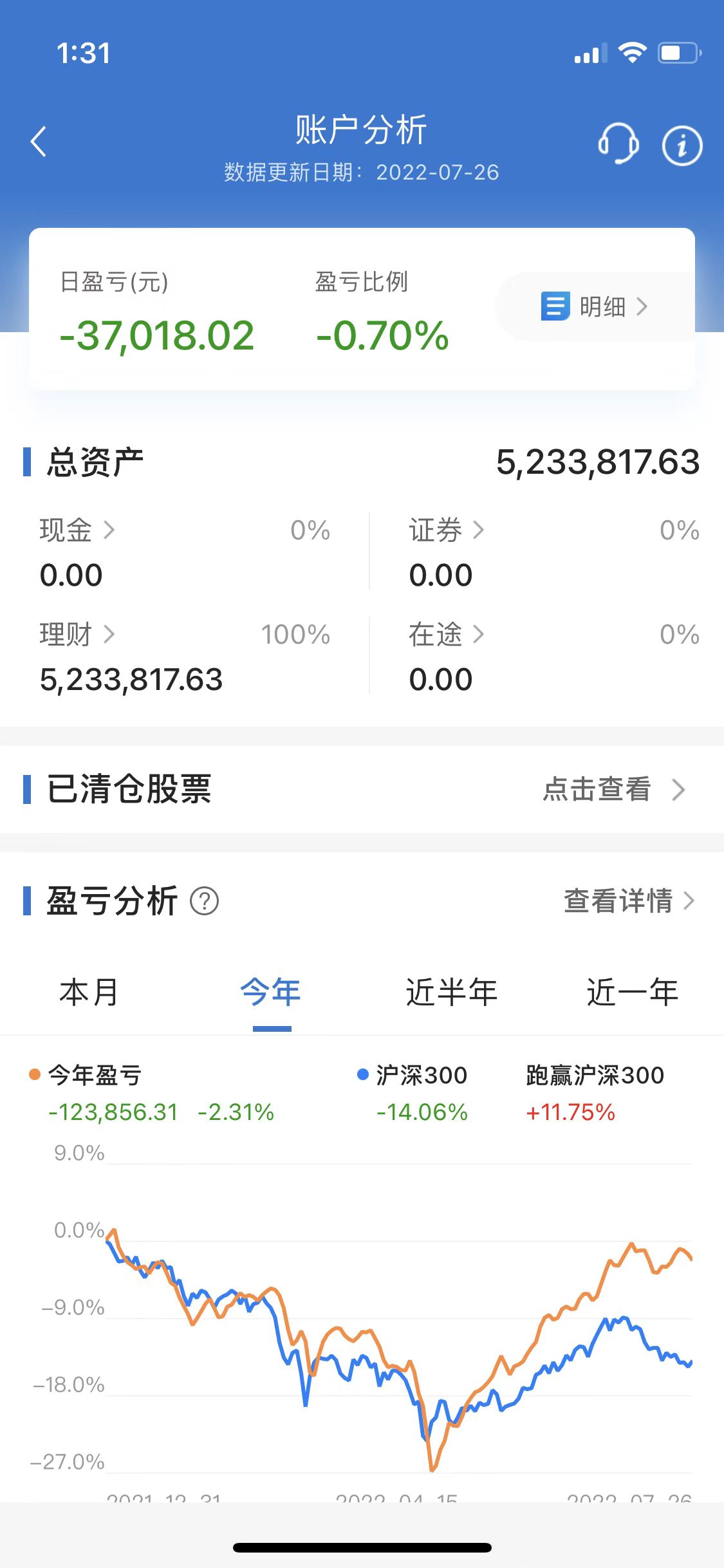 半年总结了一下略微跑赢沪深300,得益于4月28号把个股仓位换了一点ic,作为一个11年就入市的老股民19-20就发现了只赚指数不赚钱,所以慢慢的把个股换成了基金,公募当做沪深300增强,私募是中证500增强。