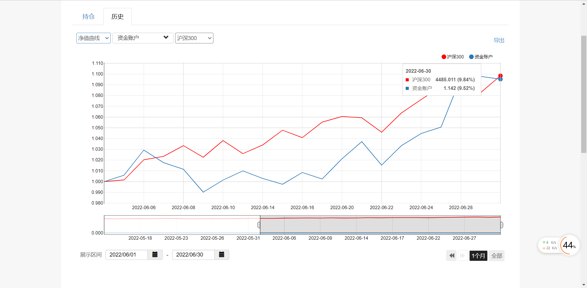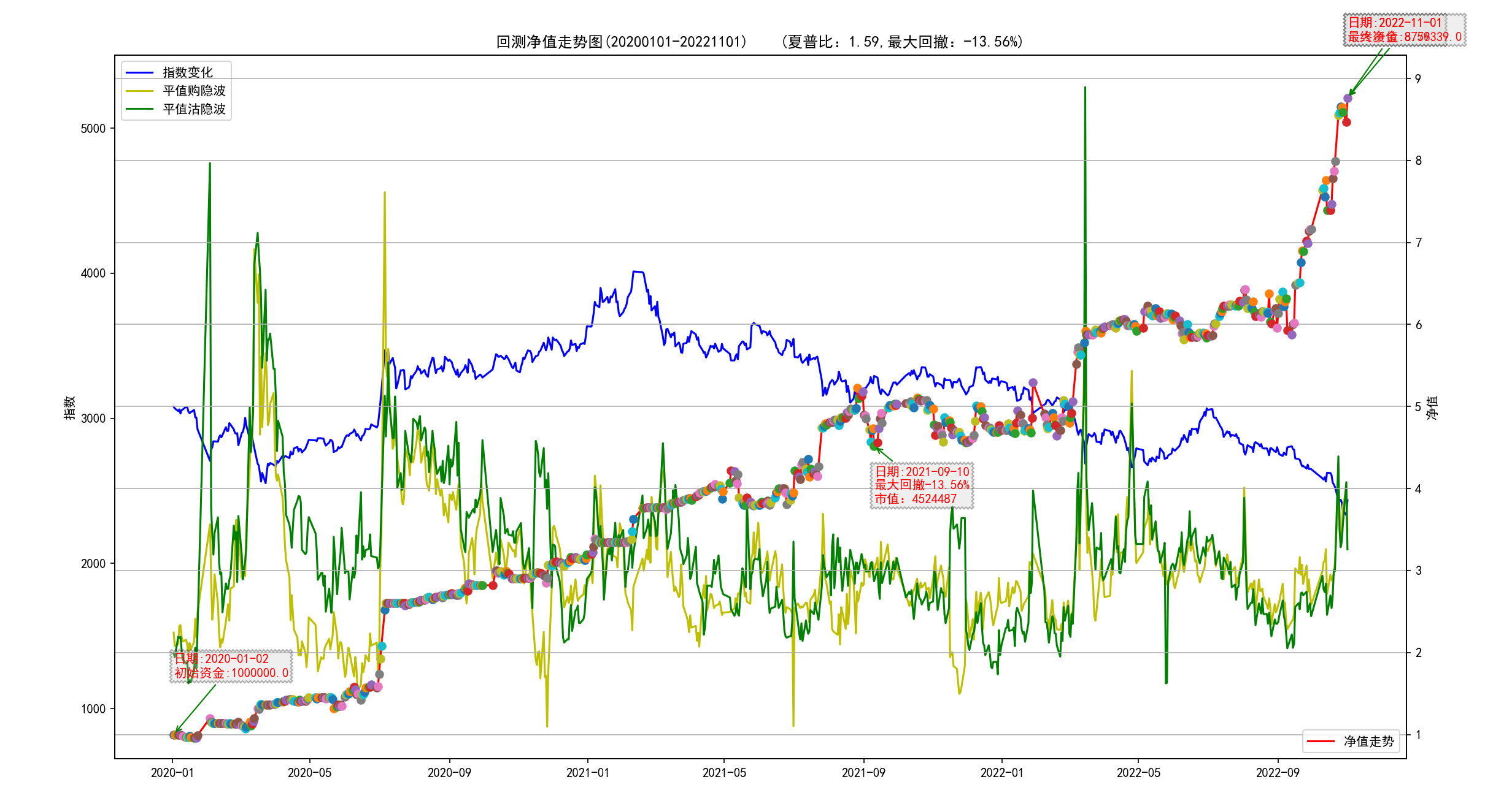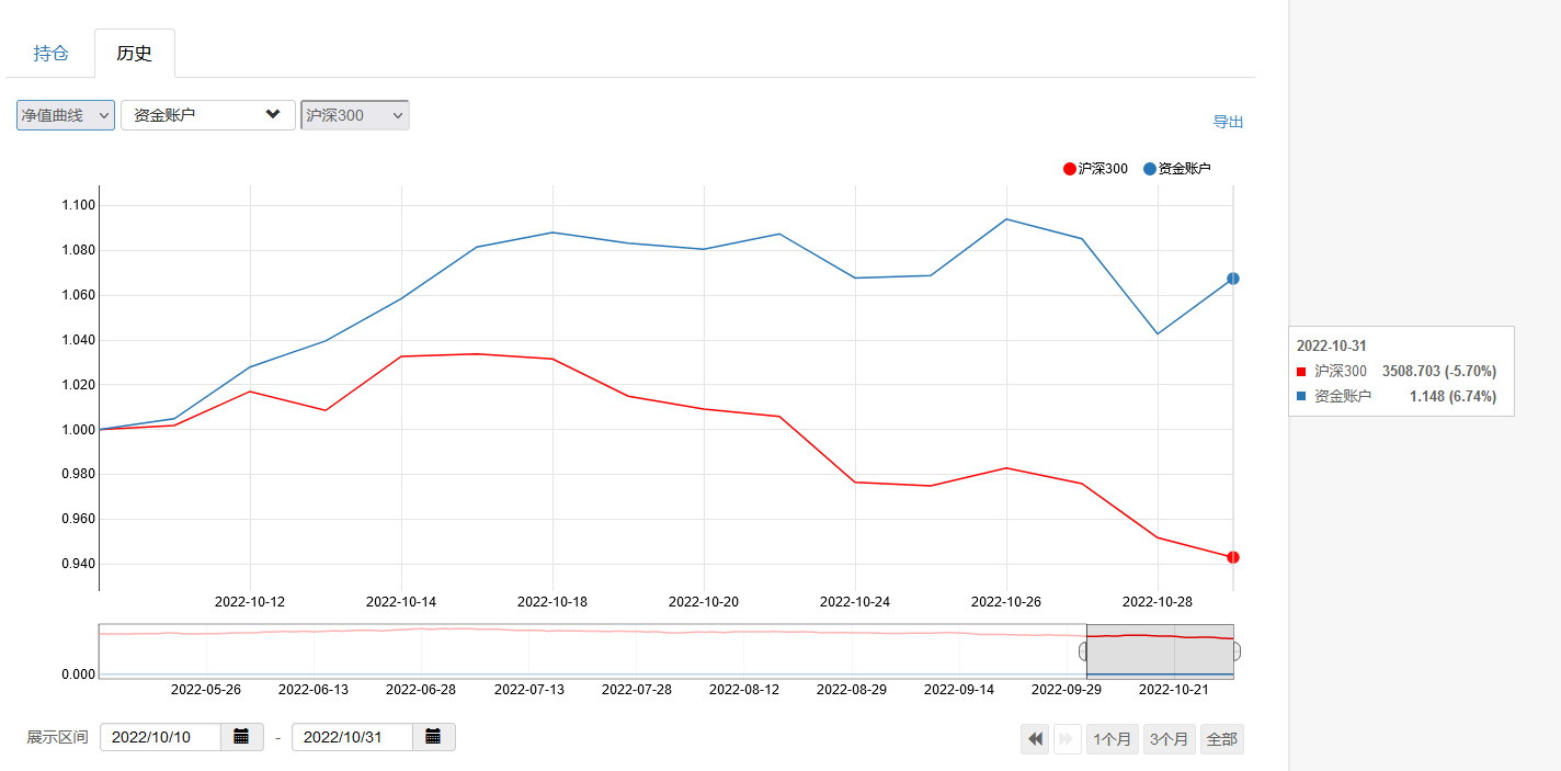 策略自5月13日运行至今一共3个半月,收益为22.31%,相比沪深300的2.19%收益,简直就是碾压。目前已经安排一部分实盘跟进了,看看什么效果。